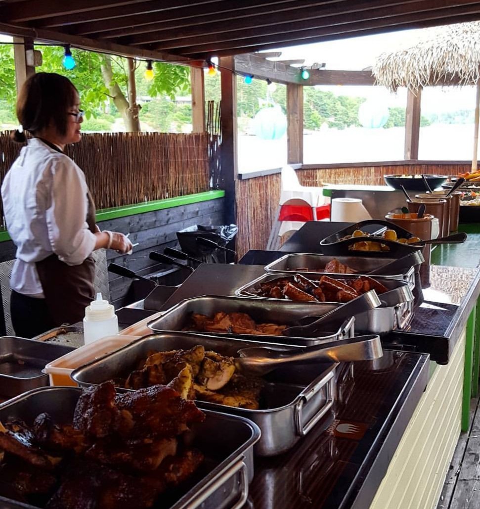 Under högsäsong serverar Bockholmen lunch och middag sju dagar i veckan, och nere vid vattenbrynet återfinns Kärleksbaren där det erbjuds grill och goda drinkar. Framåt kvällen hör vi klucket från havet och ankorna simmar förbi, doften från hav och grill doftar, båtarna börjar puttra in mot land. Värmen är behaglig och när du väl har hittat hit så vill du aldrig därifrån.