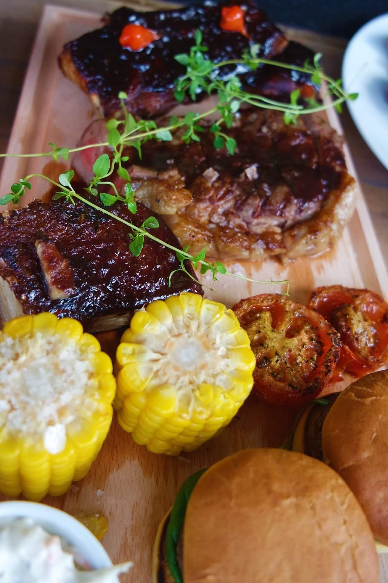 Det är alltifrån baby back ribs, grillad biff, wagyuburger, bakad fläsksida, örtbakad tomat, majs cobbets, rostad klyftpotatis, cole slawe, hotmajo och fermenterad vitlökssmör.