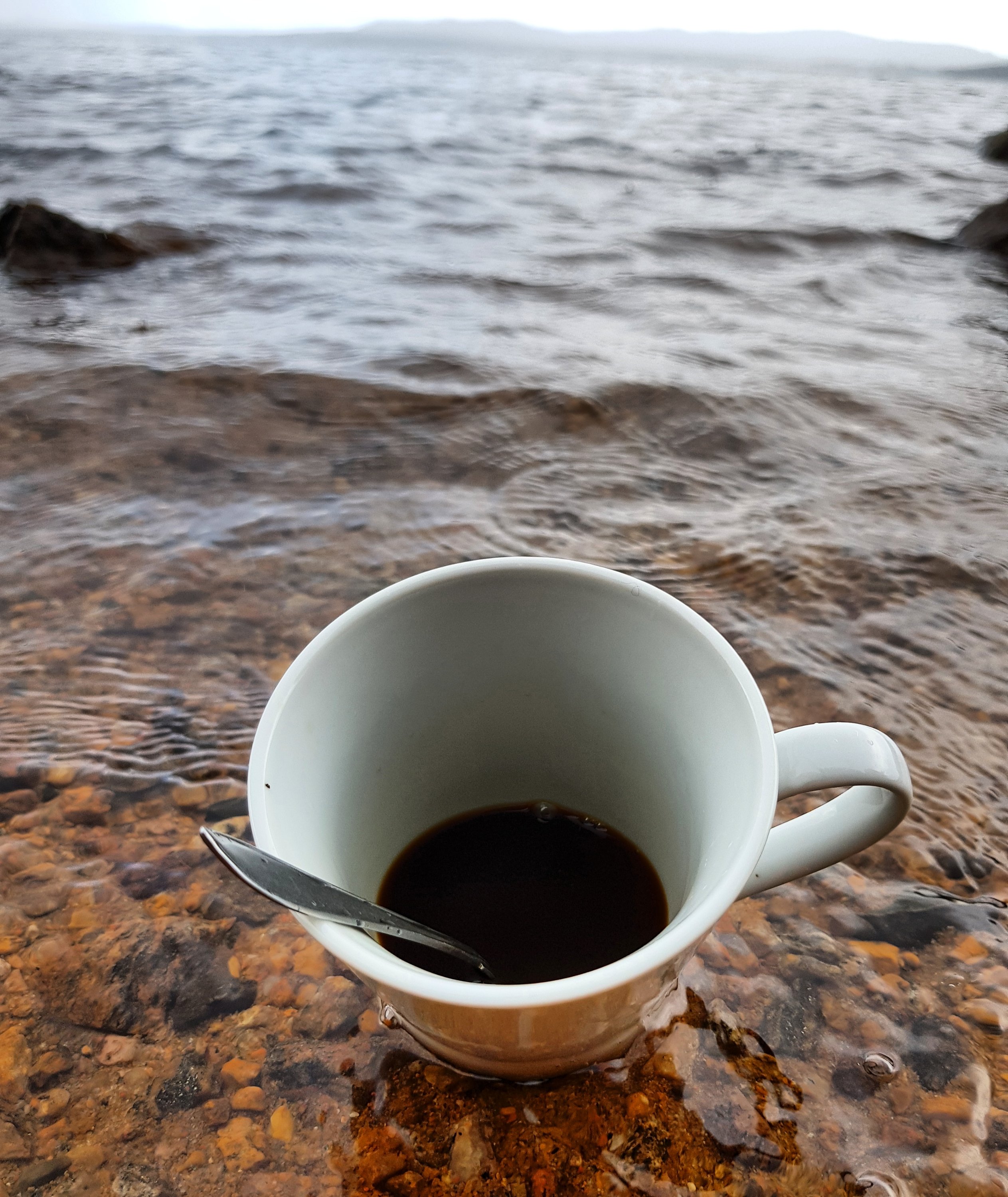 Pappa packade ner burkskinka, potatis, matjesill, legymsallad, korvbröd och Tillmans grillkorv. Här grillade vi på kvällen och åt enklare luncher. Pappa drack kaffe medans jag badade eller spelade fotboll på stranden. Under vissa perioder plockade vi hinkvis med blåbär och hämtade källvatten.