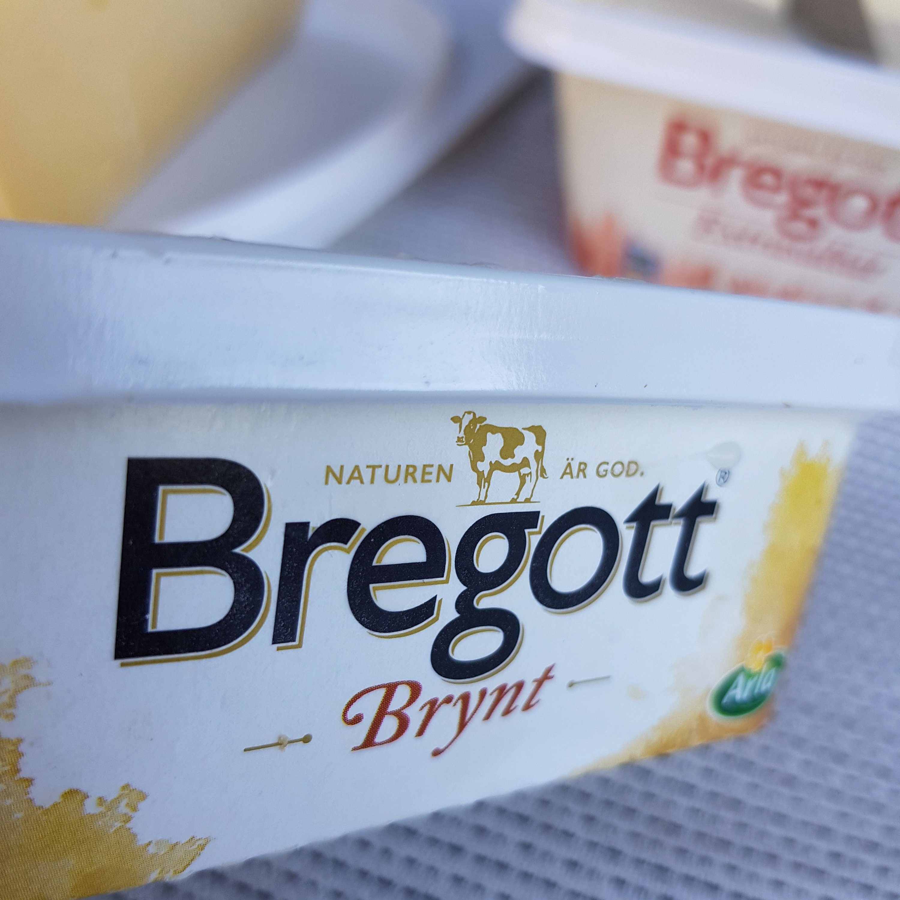 Jag hade ingen aning om att det fanns Bregott brynt. Å andra sidan har jag inte gått i en affär på väldigt länge eller ens ägnat en tanke på frukost som jag älskar. Bregott Brynt åt jag i går till nykokt potatis. Det smakade lite karameliderad nöt med en touch på sälta. Det skulle kunna bli en favorit om det fanns laktosfritt.