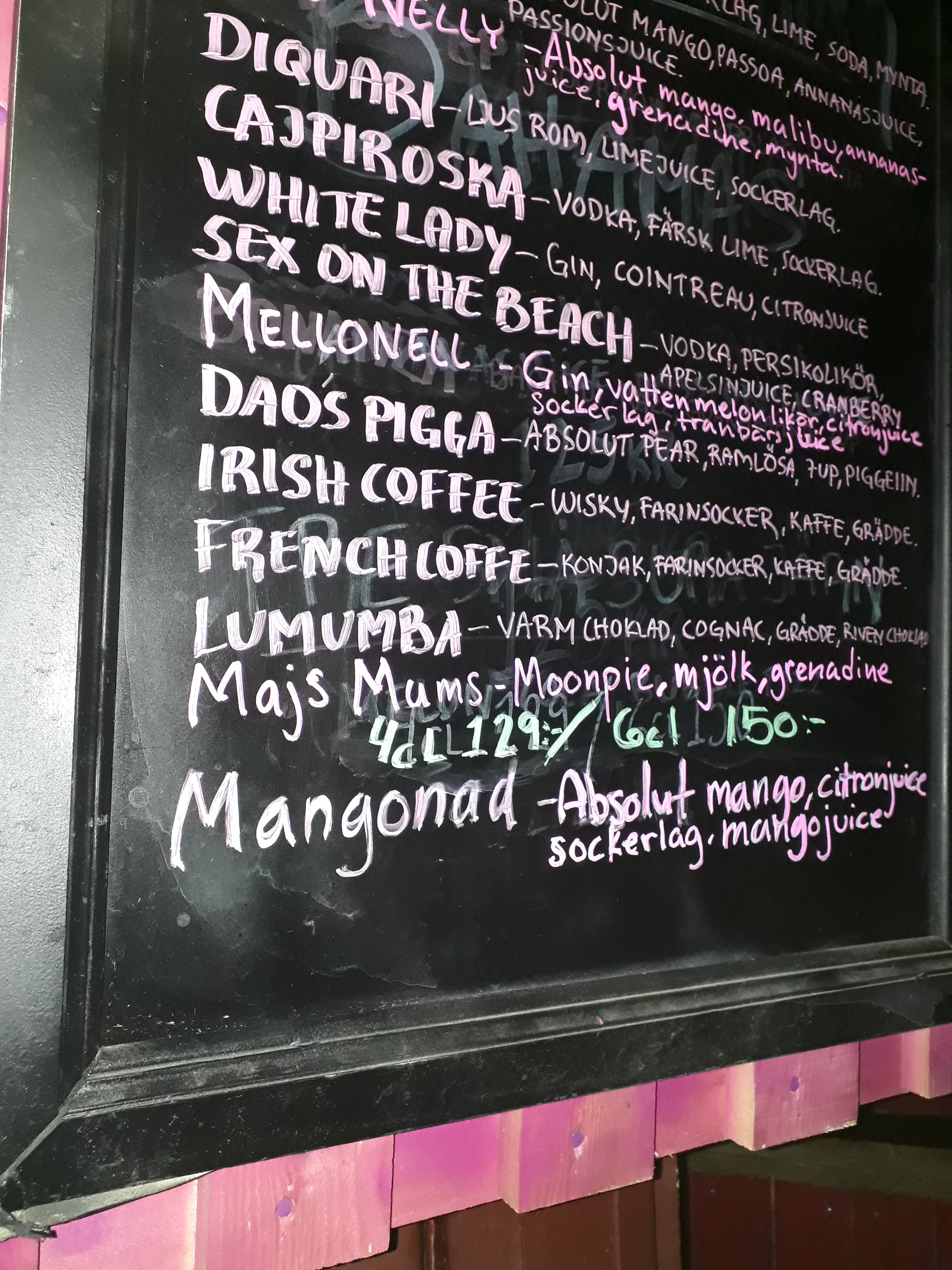 Vi håller på att fylla ut våra drinkar i utebaren och nedre. Jag har min favoritdrink och den ska göras ordentligt. Det kunde dom inte göra på Baras Imperium igår men på båten Patricia på övre däck. Inte undre. Dock gör jag mina bästa själv. Vad är din favorit?