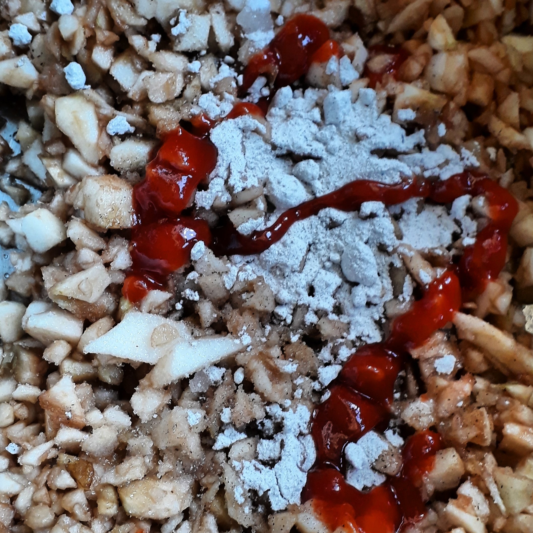 Idag plockade jag ihop lite äpplen från krogen. Vi har ett ganska så stort äppelträd. Jag drog ihop en chutney på siracha, vaniljstång, socker och äpplen som kan passa bra till charkbrickan. Om tiden till ett långkok på lamm hade funnits så skulle det ha passat perfekt med syrliga äpplen.