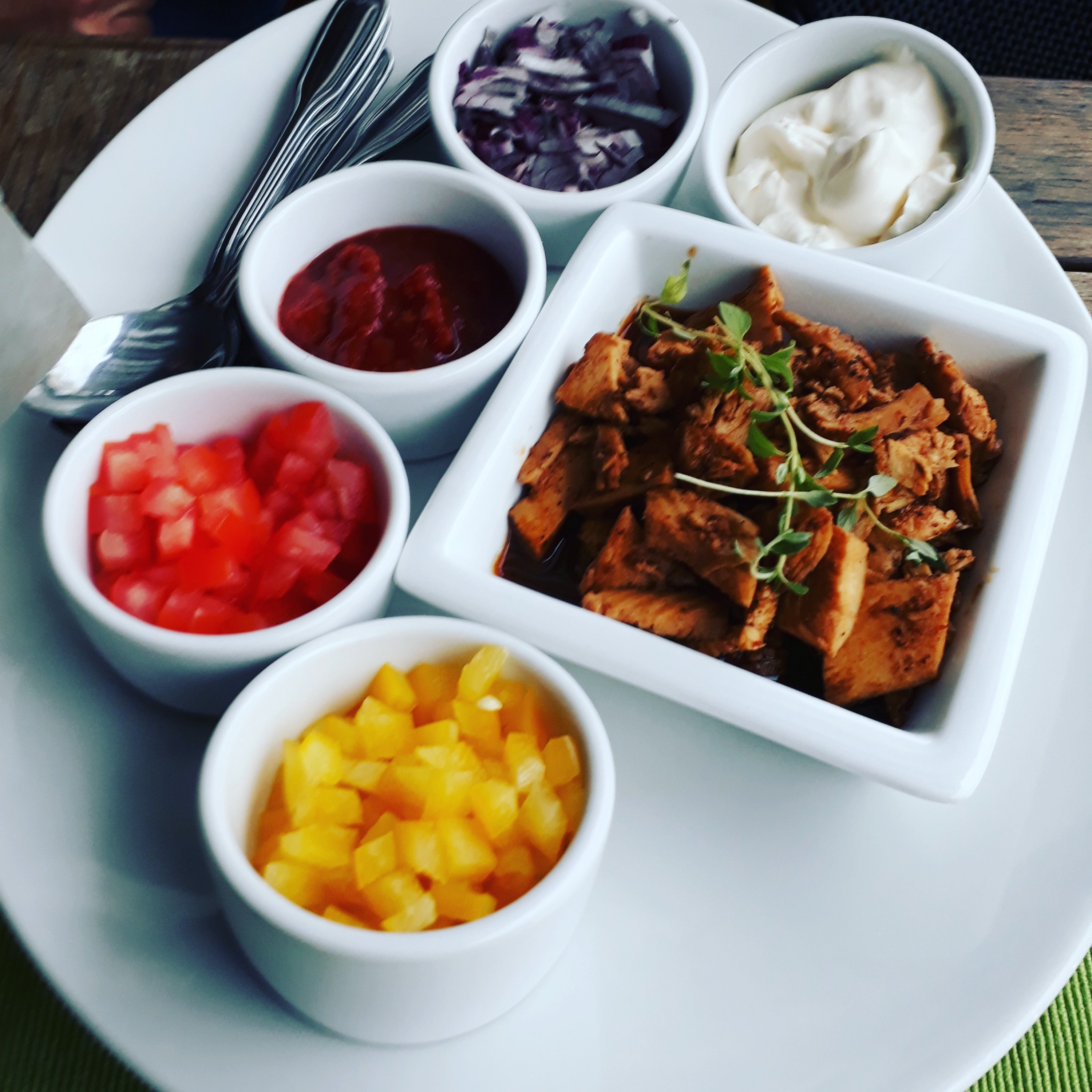 Jag har varit så sugen på S.O.S, nachos och vanlig husmanskost i flera veckor. Det blir liksom inte av att äta sådan mat på krogen och i mitt lilla hus finns inget sådant utrymme. Sist blev jag bjuden på frukost vilket var lycka att för gom och själ. I dag kom Henrik och sa att jag skulle blunda. En tallrik med kycklingnachos stod framför mig och en liten. Hur underbart är inte det? Det kompletterade min ynka frukost.
