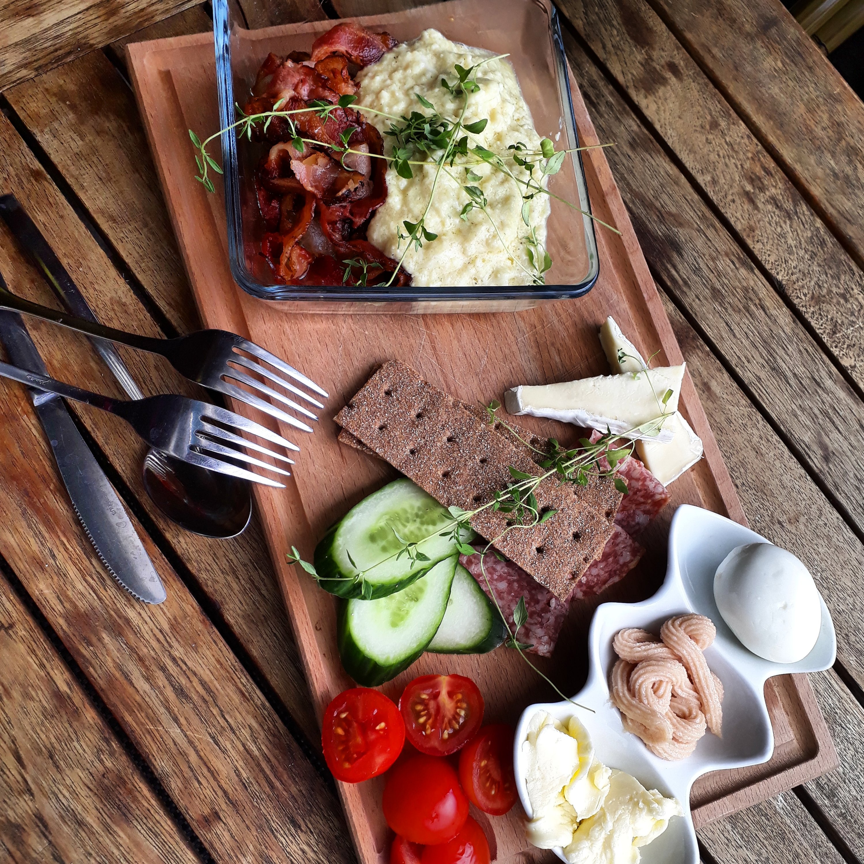 Jag skulle ha levererat frukost till min chef då jag själv var superhungrig. Dock är en inte lika sugen på att fixa till sig själv för tillfälligt så jag svängde ihop en äggröra och lite småplock. Hon hann dock komma ner till krogen men blev lika glad och överraskad. Jag älskar goda frukostar och speciellt när det serveras. Det är liksom lite pricken över i:et för min del samt om någon älskar och uppskattar mat lika mycket som mig.