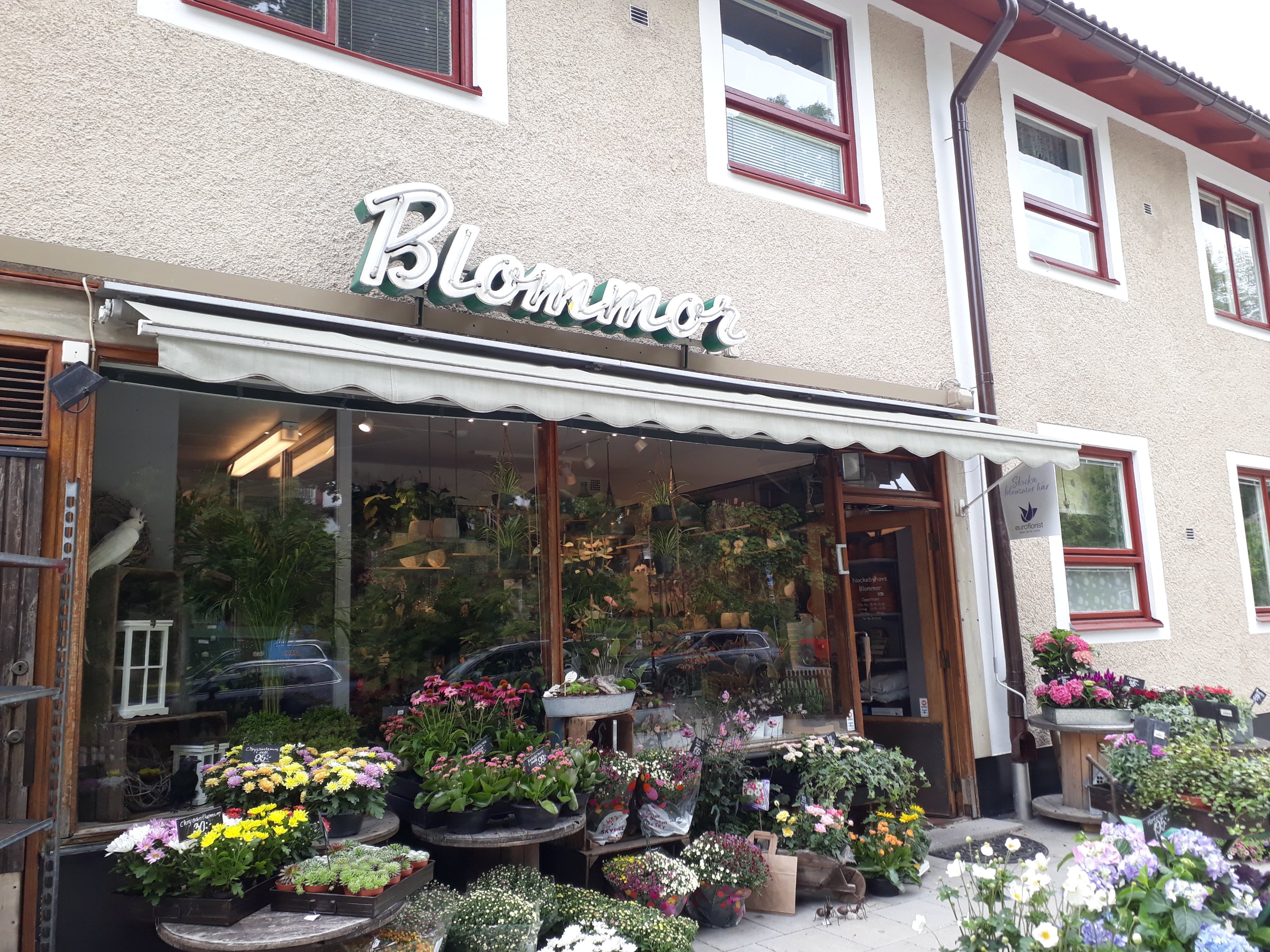 Kommer ut superglad och även floristerna som kanske fnissade till av dagens lycka.