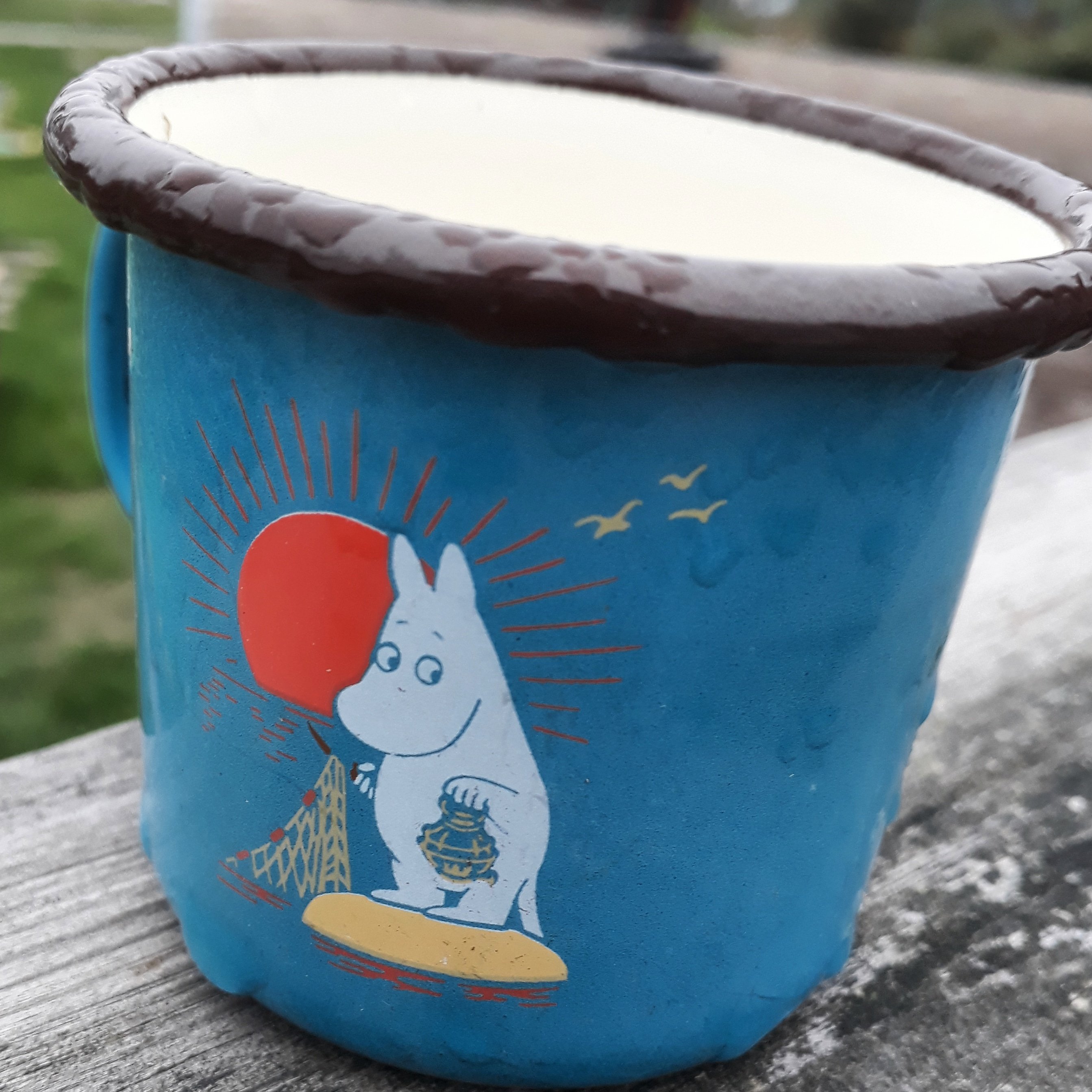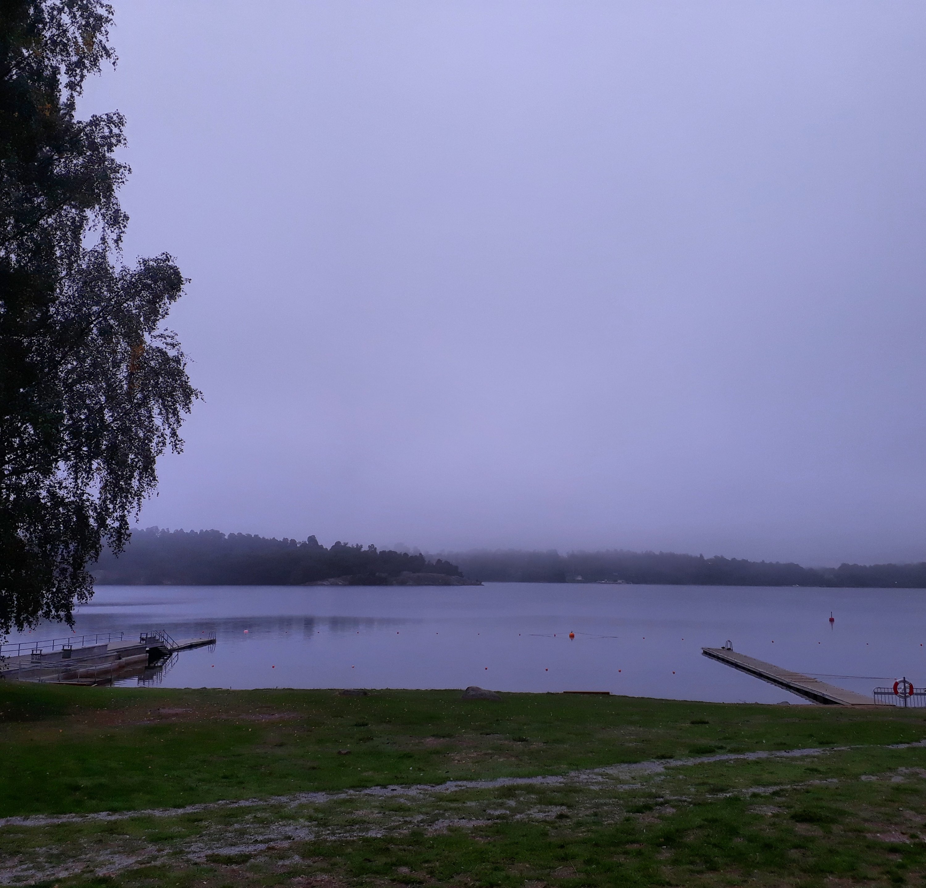 I morse låg det dis över hela havet tänkte jag säga men det är ju Mälaren. Det är fortfarande grönt runtom och väldigt behagligt. Någon har glömt sin muminmugg?