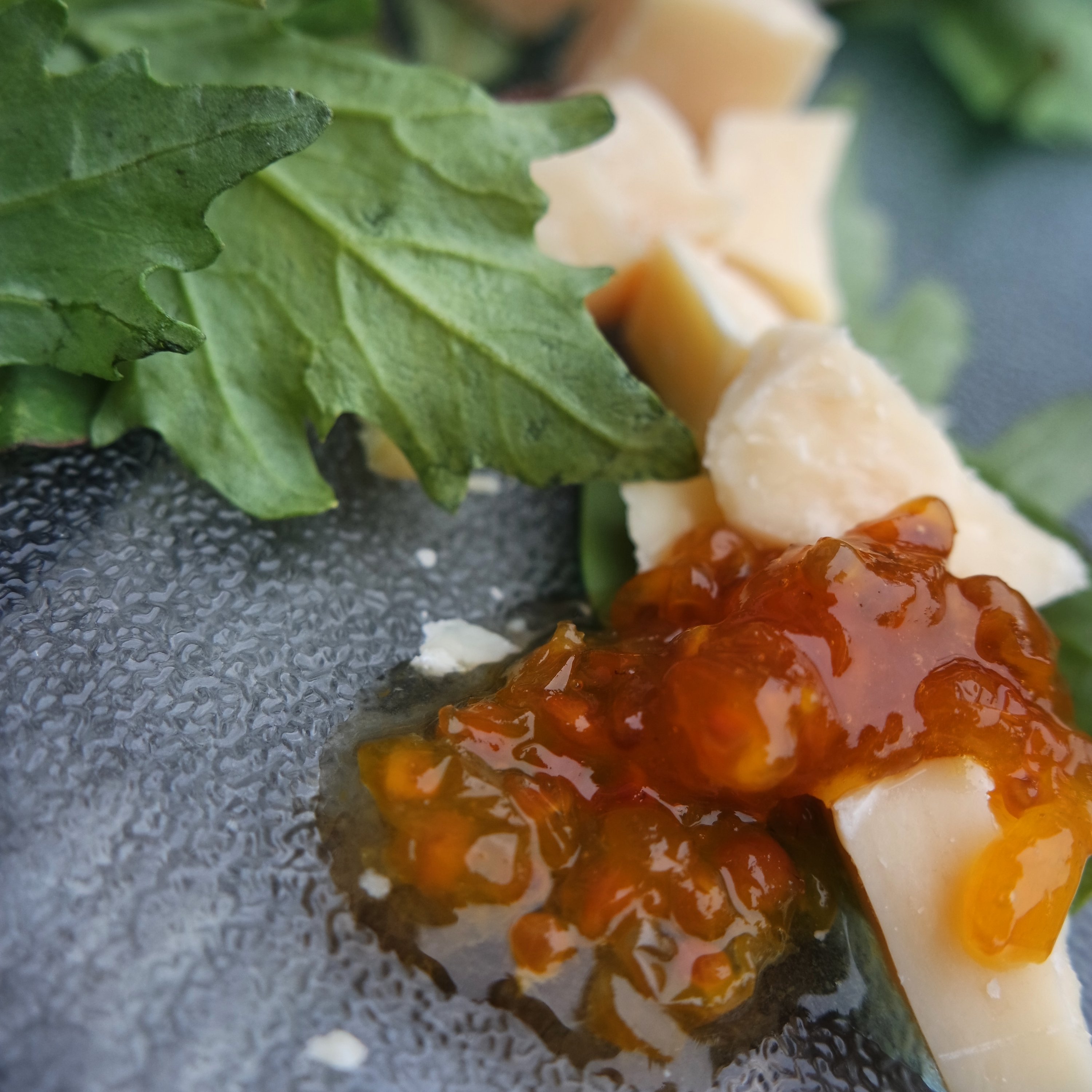 Dagens lilla bricka består av parmensanost och en massa hjortronsylt på en salladsbädd. Tillsammans med ett glas Amarone Tommasi och vatten apart så är höstkvällen räddad.