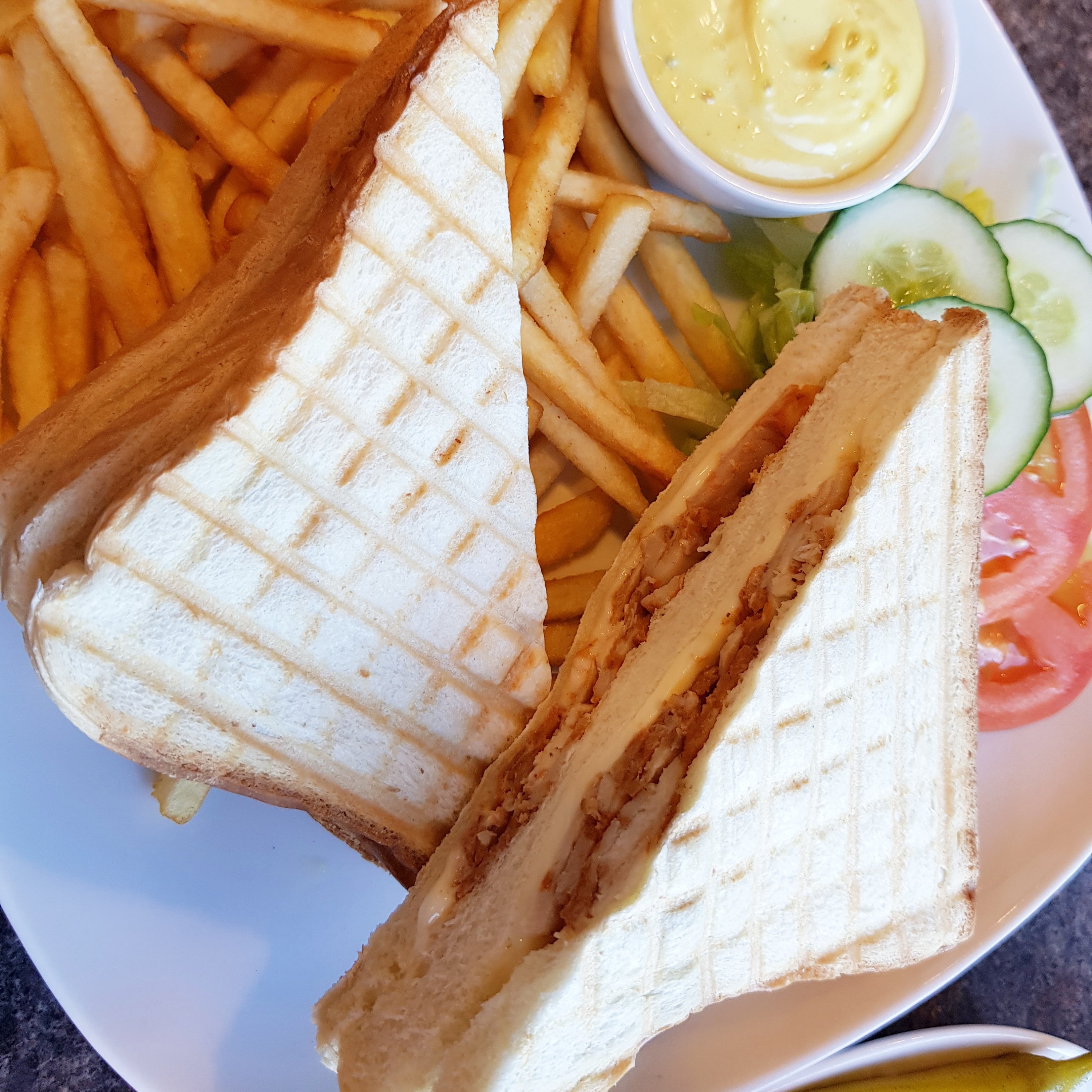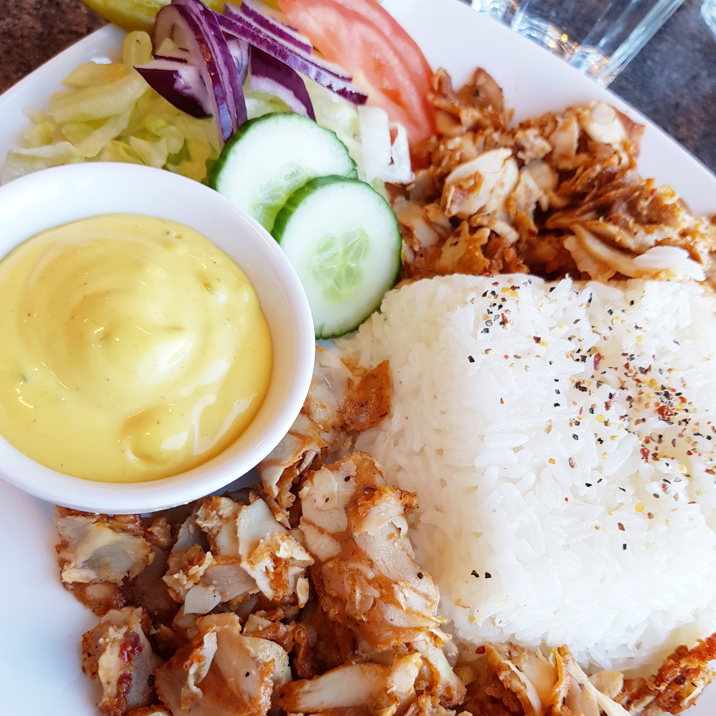 Jag brukar inte skriva om när vi äter snabbmat. Det är inget jag värnar om men ibland är det gott, enkelt och för att inte tala om umgänget när det är trevligt. Då spelar det förstås ingen roll vad en äter mitt på ljusa dagen? Det var alltifrån kycklingkebab till kycklingtoast med nån slags mangodressning? Helt okej för att vara snabbmat en enkel vardag.