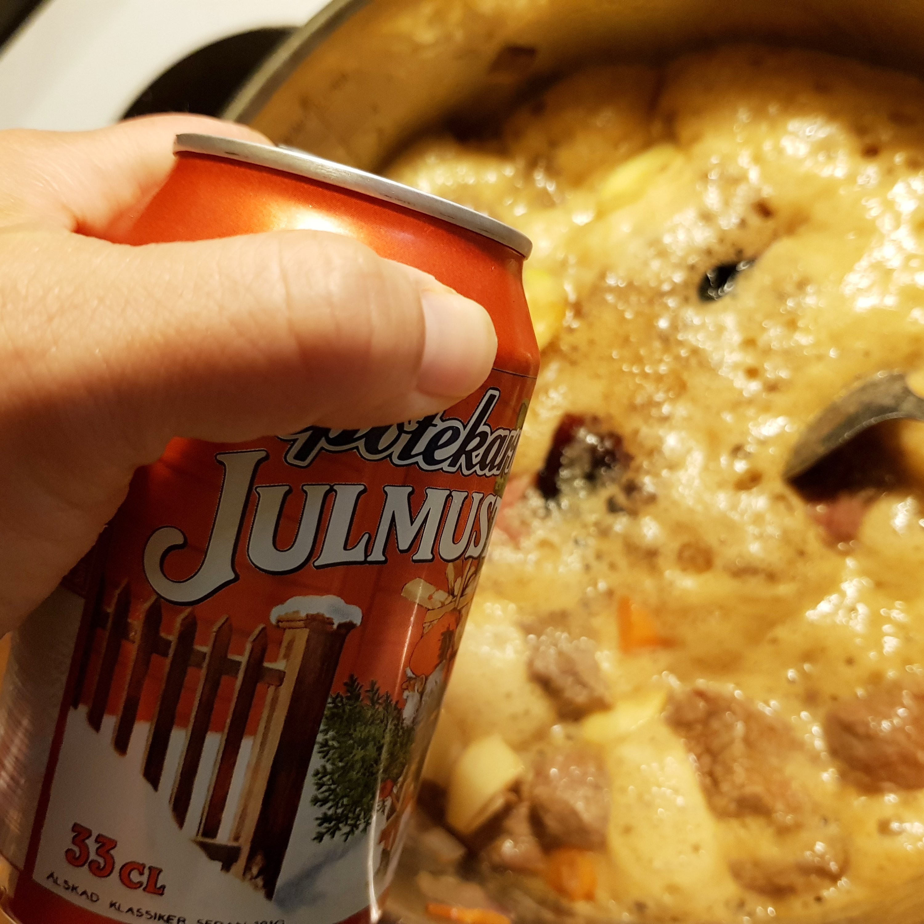 En härlig god julgryta på rabarbercider och julmust. Smakkombination är magisk. Det blir lite som umami. Ni kan inte sätta fingret på över vad det är för smak. Det är bara så gudomligt gott.