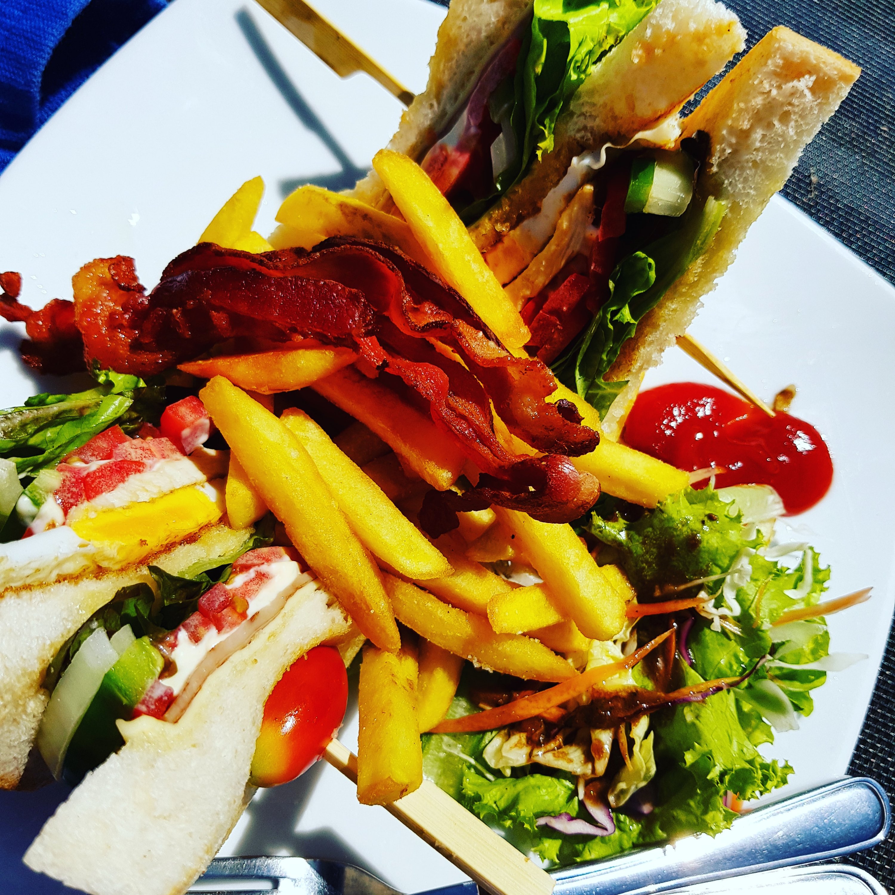 Är inte Club Sandwich en sån här typisk maträtt som du inte får missa när du åker utomlands. Det är väl ett safecard? Lite som krogarna i småbyarna runtom i Sverige som serverar hamburgare. Eh?
