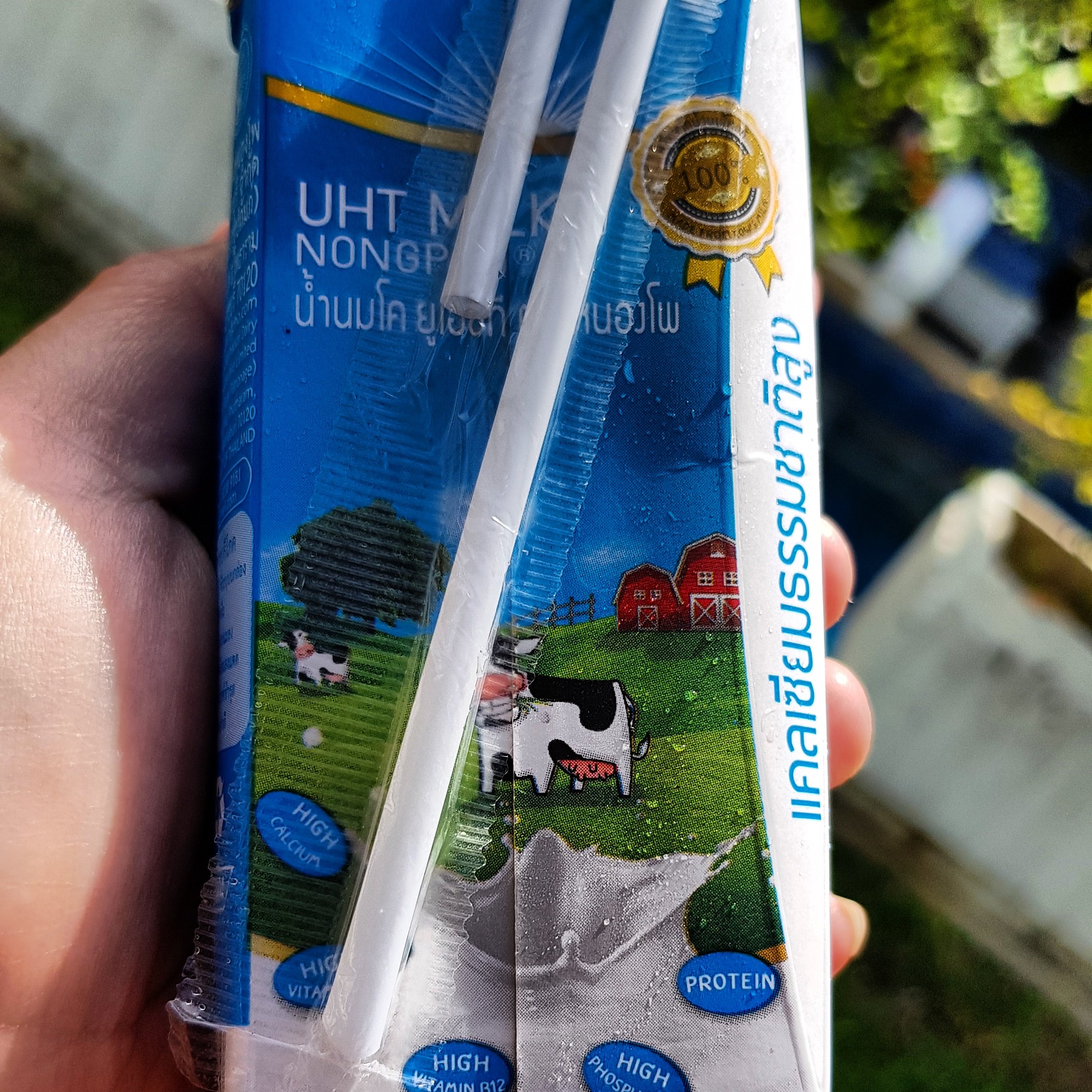 Eftersom jag har världens abstinens så har jag nu testat nongpho (mjölk) från sugrör men det smakade verkligen inte gott.