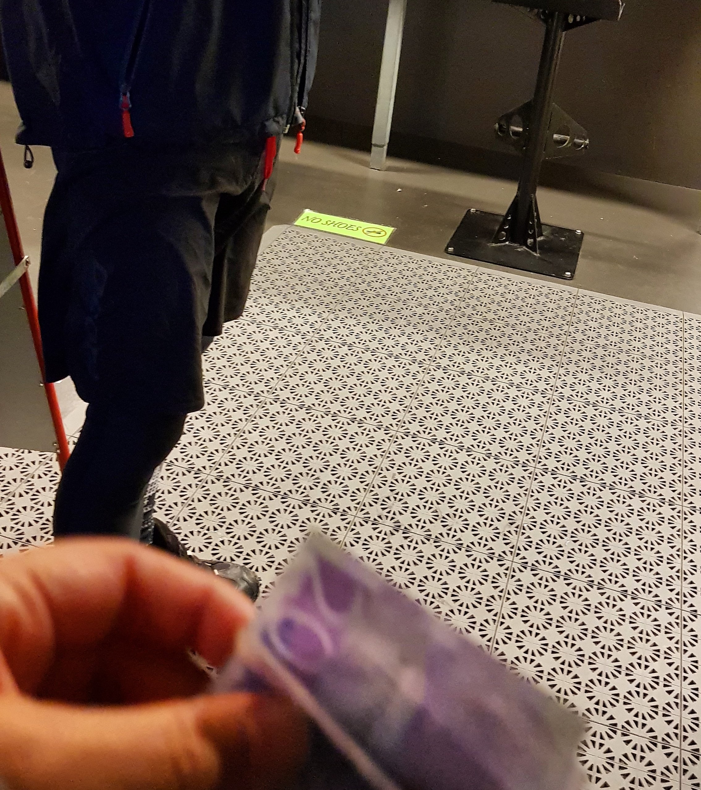 Väl på plats fanns det ett rör jag skulle slänga ner pengarna i men det var en jättefin och muskellös kille som svischade åt mig så vi bytte hjälpsamhet.
