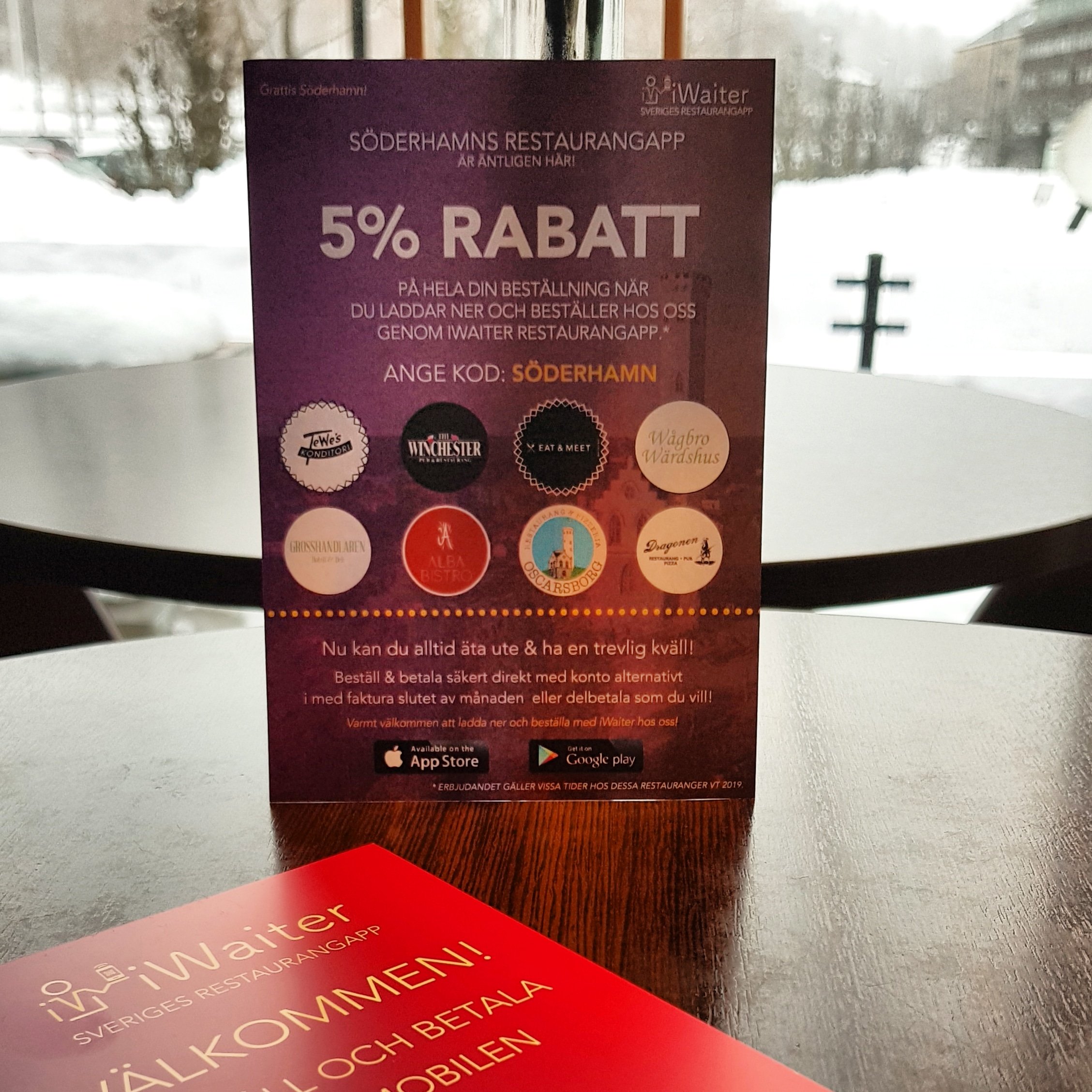 Ni får 5% rabatt på er beställning när du laddar ner och beställer hos oss genom iWater restaurangapp.