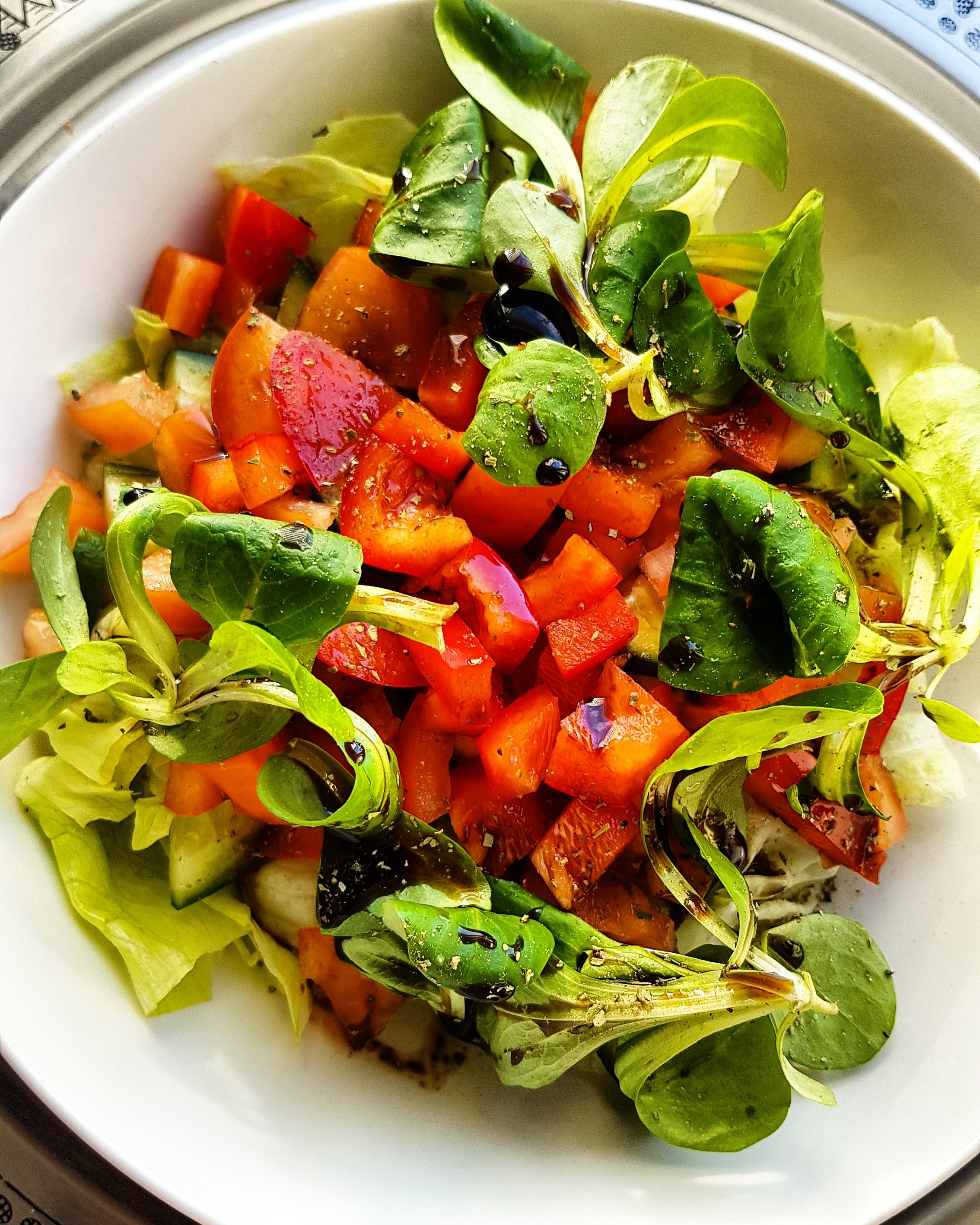 Servera med en härlig blandsallad. För vegetarisk stroganoff tillsätt halloumi eller portabello.