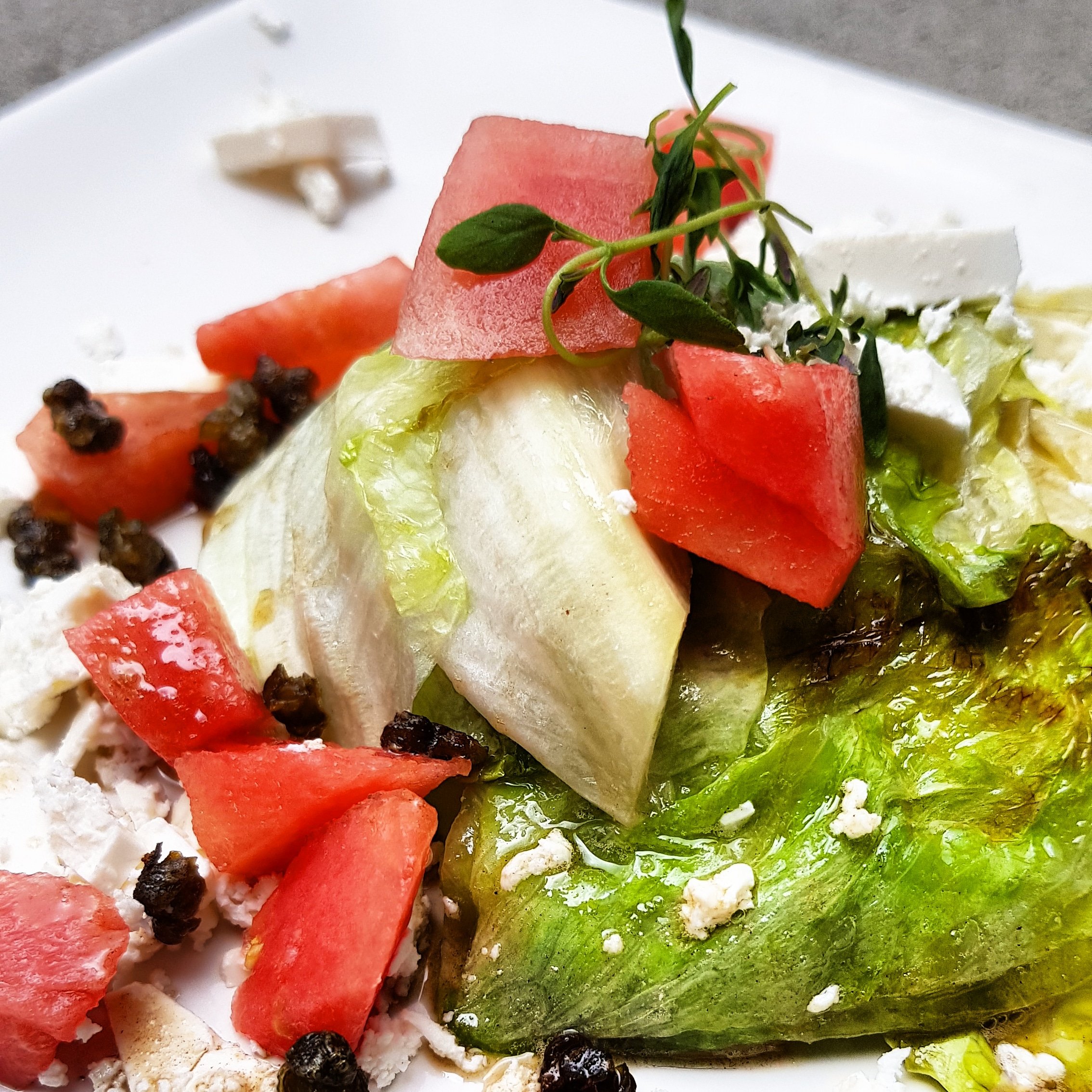 Jag försökte mig på grillad isbergssallad vilket gick helt skapligt och smakerna gifte sig samman med fetaosten, vattenmelon och smörstekt kapris. Det kan bli en bra sommarsallad men det kanske går att piffa till rätten lite mer? Serveas såklart med en big Wave Golden Ale.