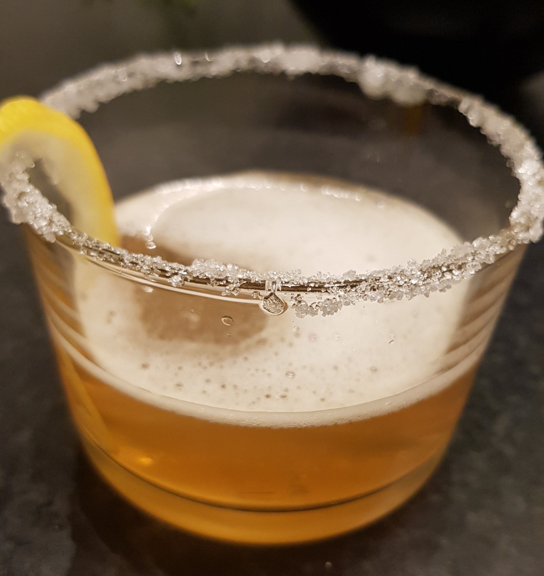 Häll alla ingredienserna i en shaker med is och skaka ordentligt. Sila upp i ett kylt glas och garnera med citronskal och eventuellt socker på kanten.