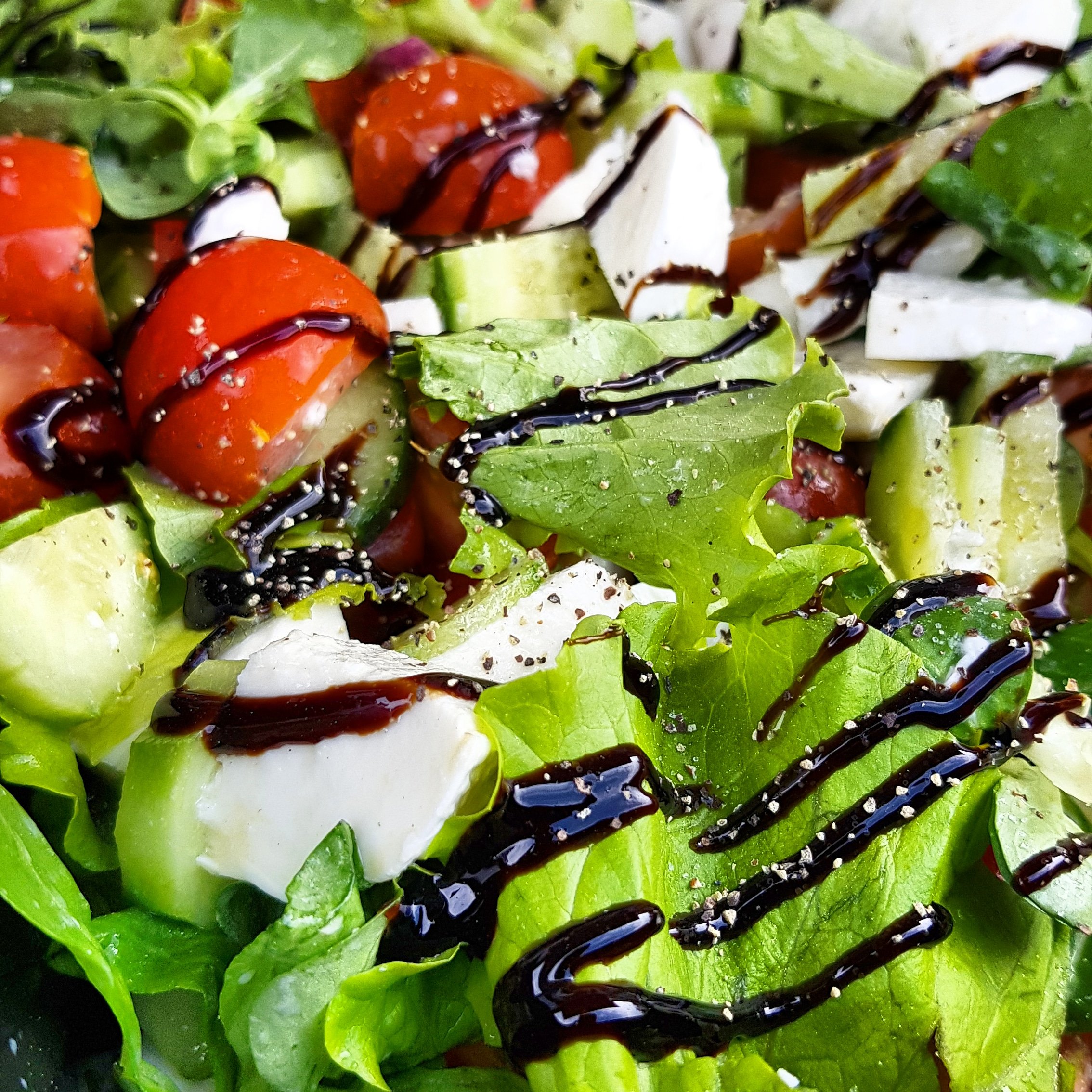 2. Mozzarellasallad med tomater och gurka samt balsamico