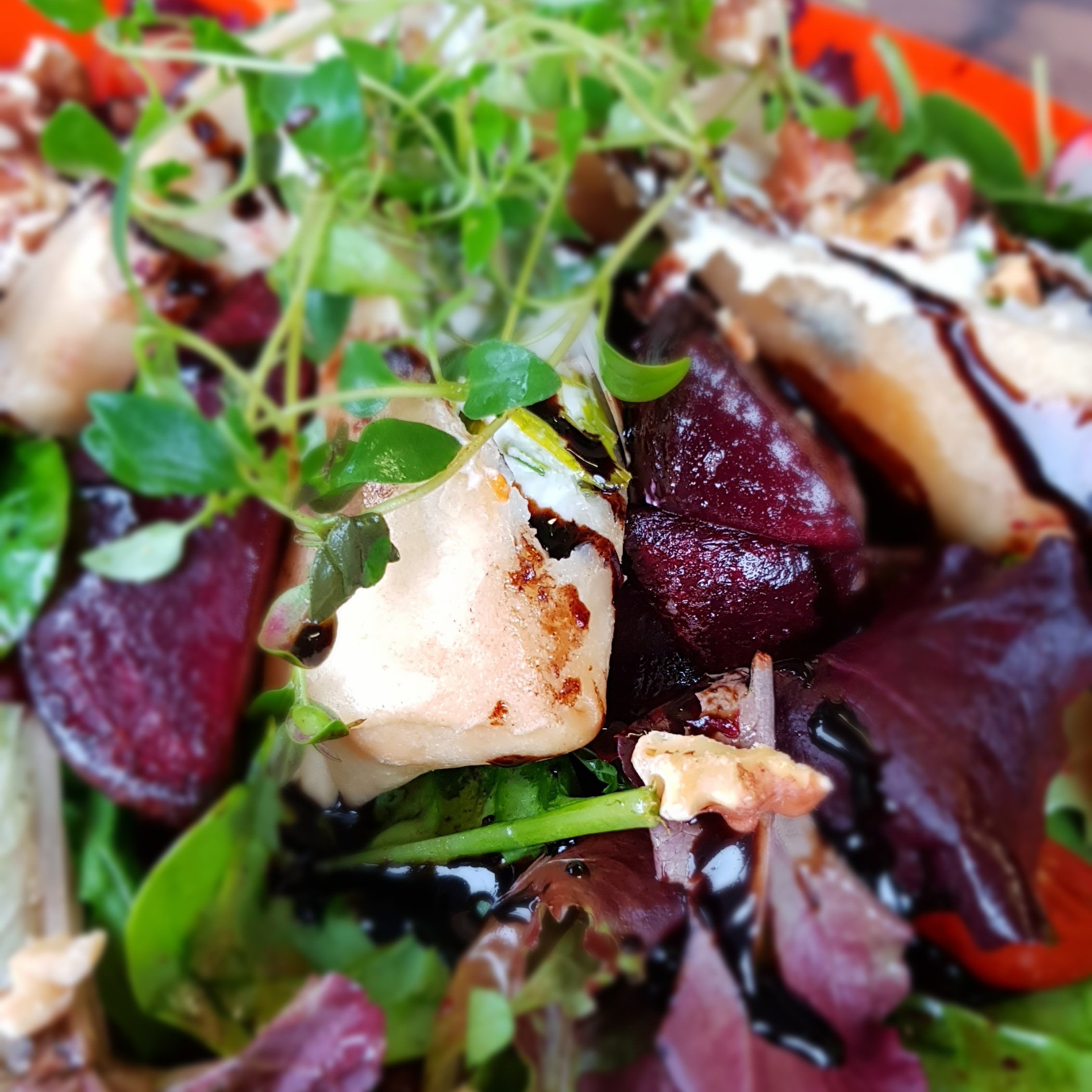 Idag har vi serverat friterade fetsostknyten med smörslungade rödbetor och valnötter som toppas med balsamicocreme och timjan. Dagen har inte alls varit bra rent väderleksmässigt så vi har förberett till en buffé i morgonkväll. Jag har också blandat ett par drinkar samt gjort grunden för en väldigt god skagen. Personalmaten idag fick bli egenstekta hamburgare.