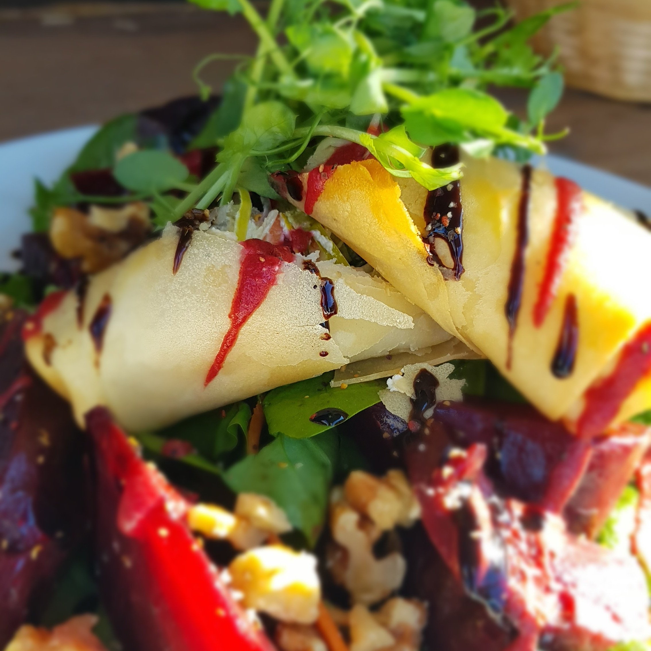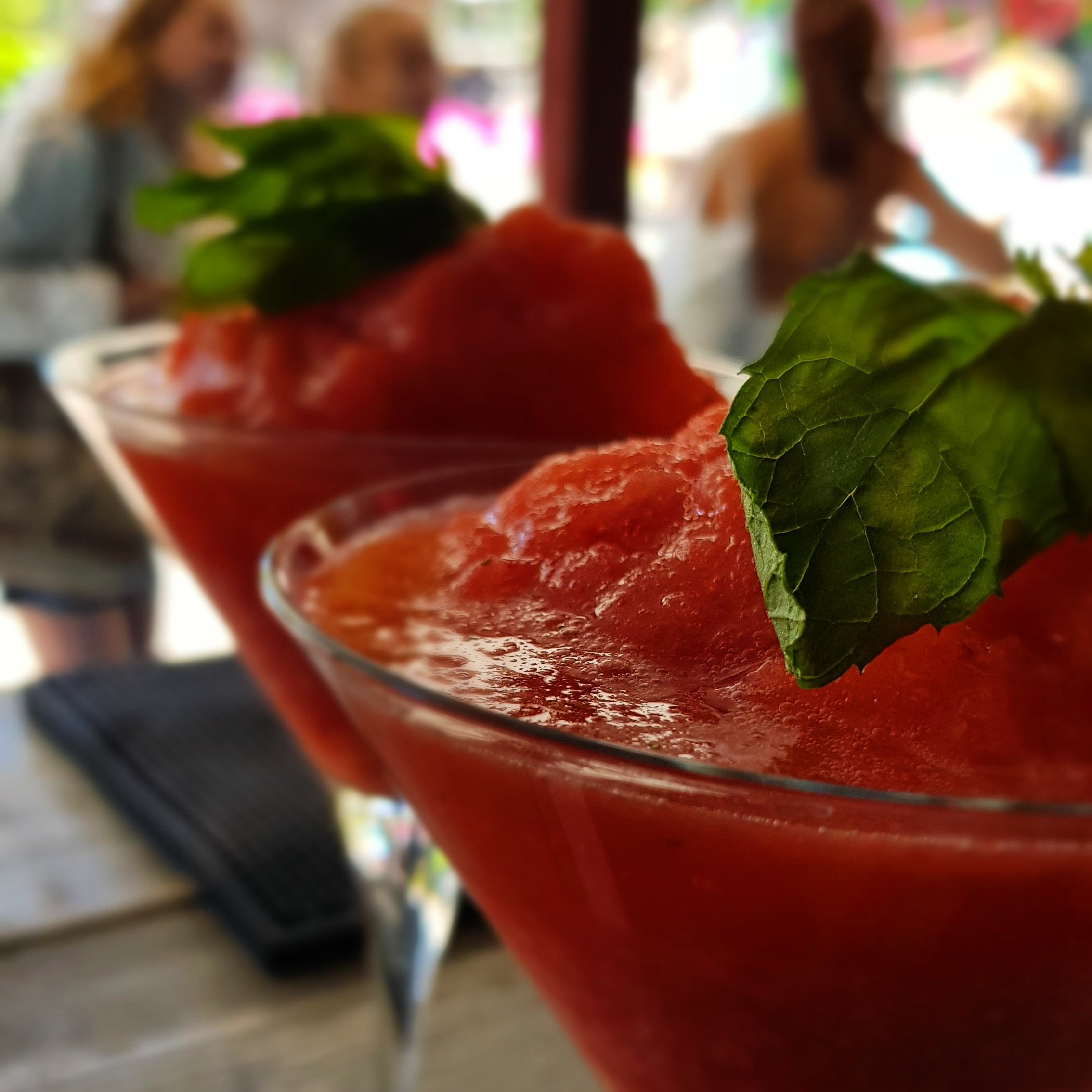 Varmrökt laxröra med pepparrot toppas med ärtskott.Rimmad lax med senapscremè som toppas med dill.Chevrecremè med honung som toppas med ärtskott.Rökta räkor med aioli.Friterad halloumi är en utav Daos favoriter.Friterade fetsostknyten med rödbetscoullis.Jag gjorde en jordgubb och rabarberdaiquiri.Här är min kryddblandning till tomatsås.