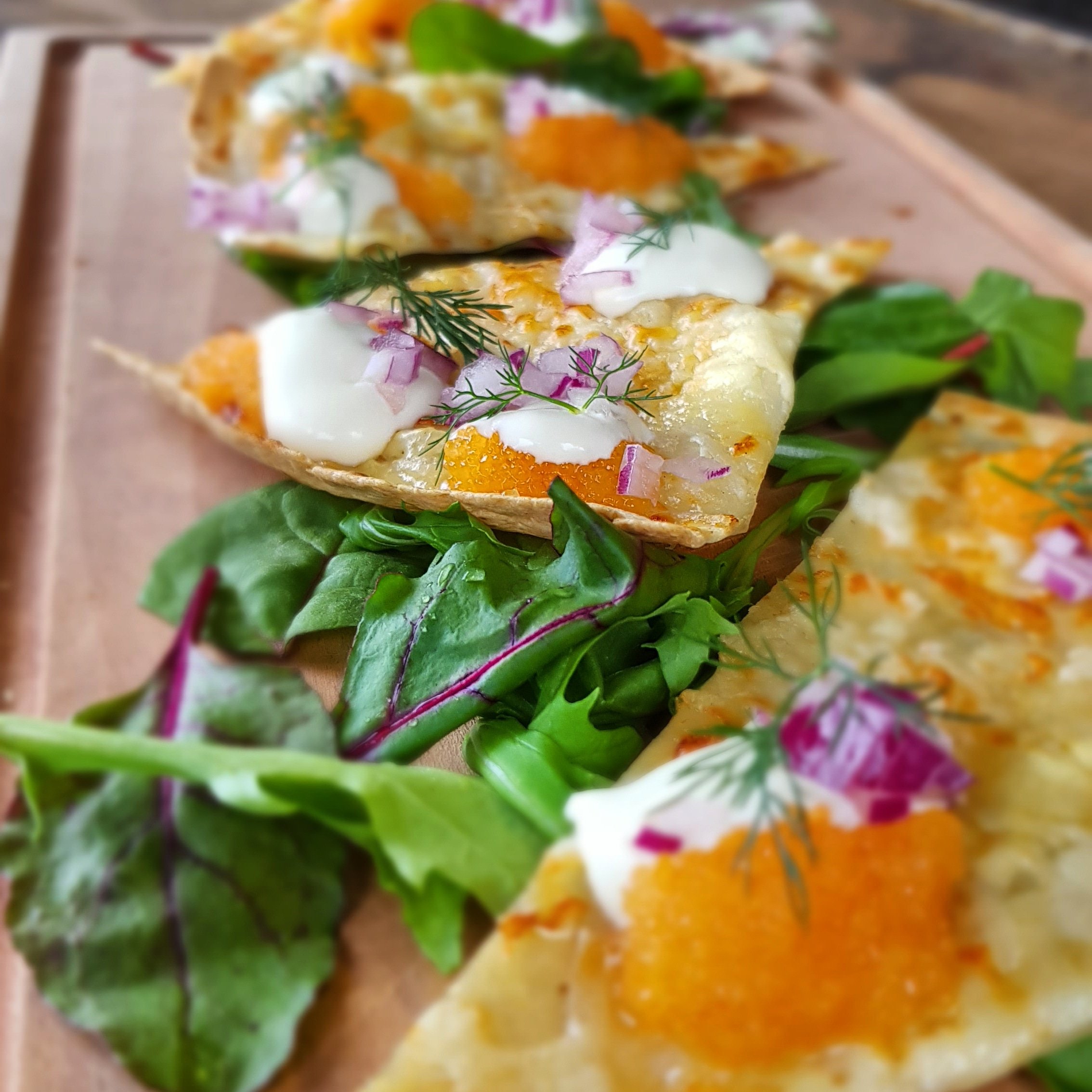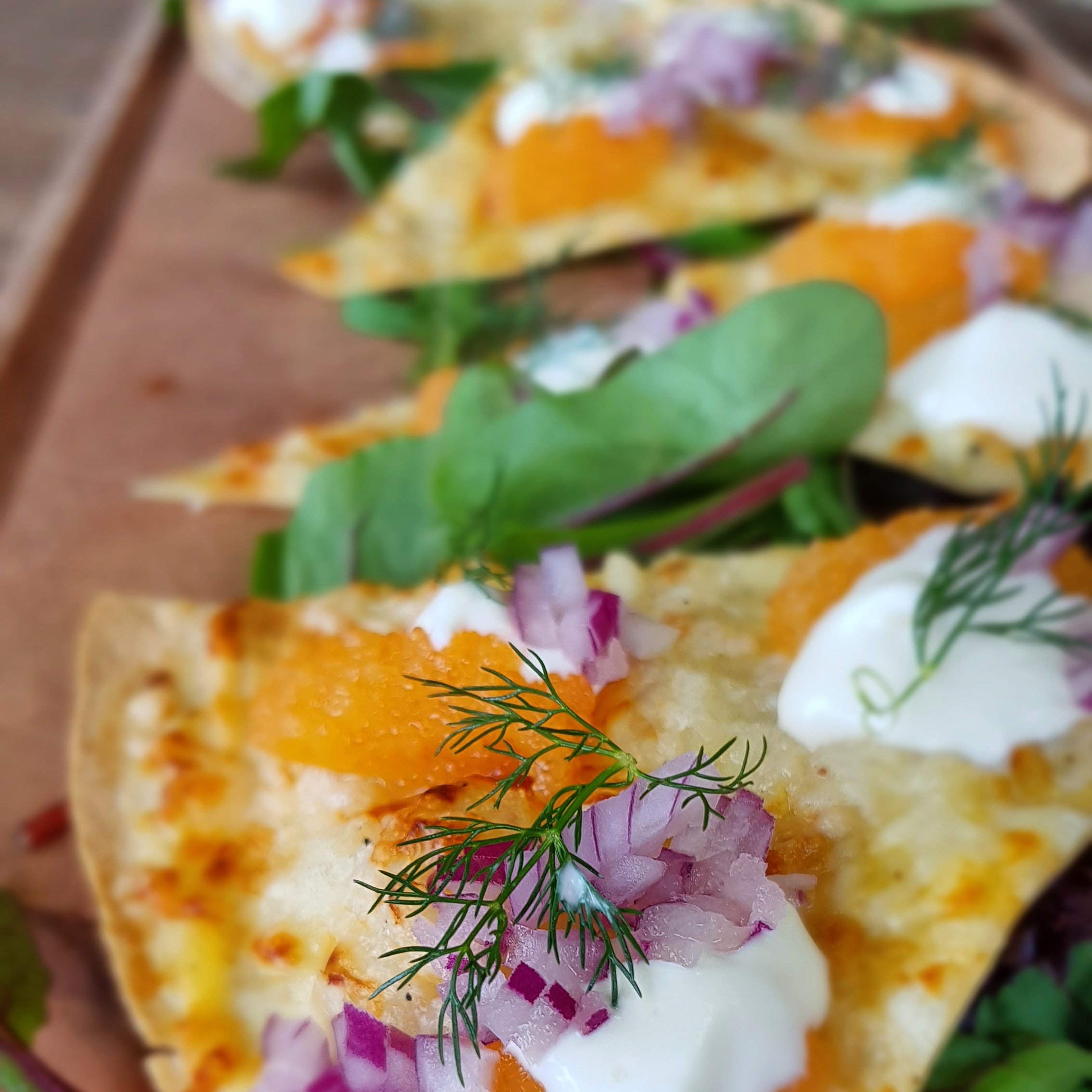Idag testlagade vi löjromspizza som serveras med ett glas Exhi’b eller en öl från Nab Sweden. Det blev perfekt med vispad cremé fraiche och löjrom på toppen med finhackad rödlök. Det kommer att passa perfekt om vi kör erbjudandet någon dag.