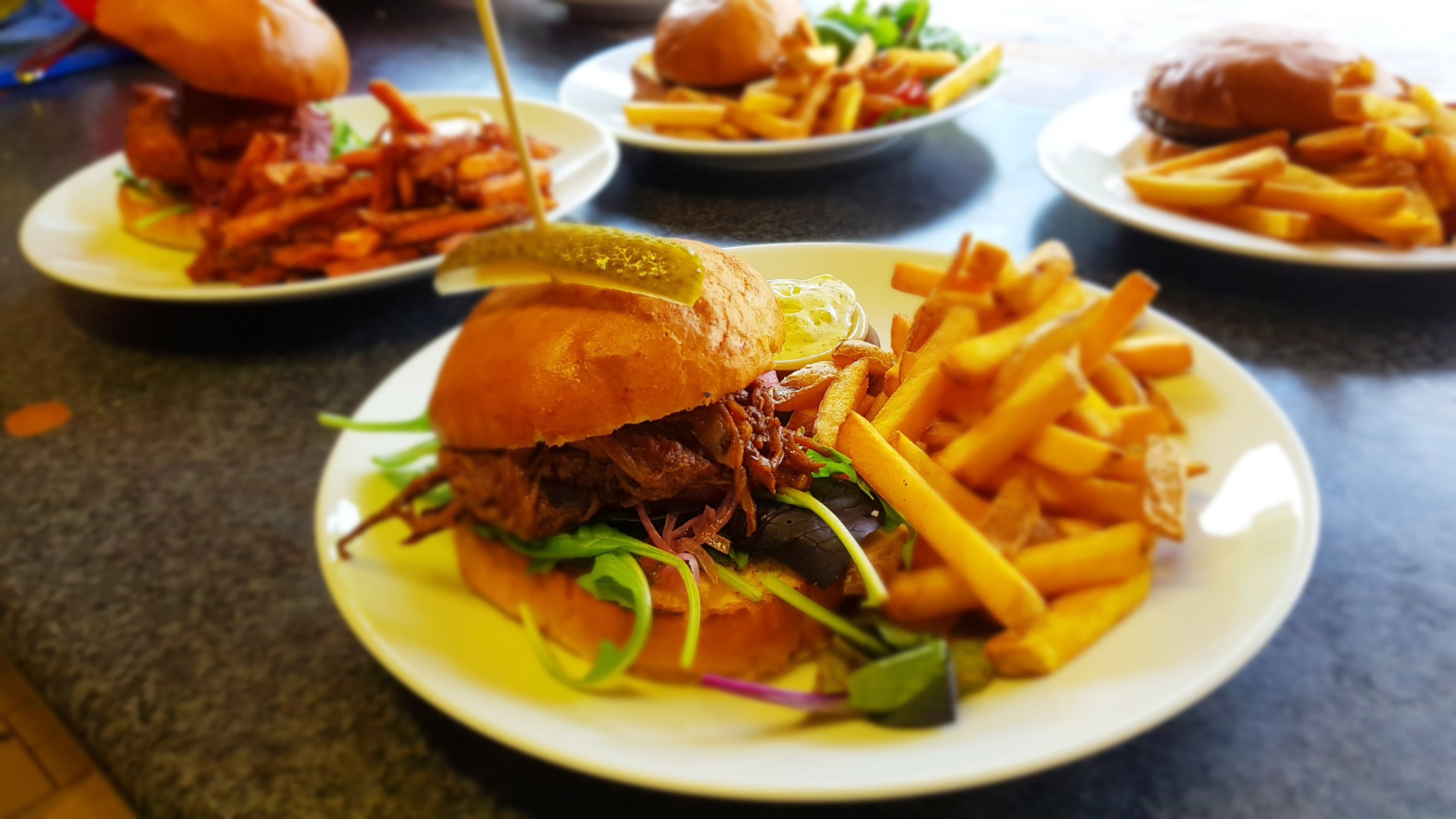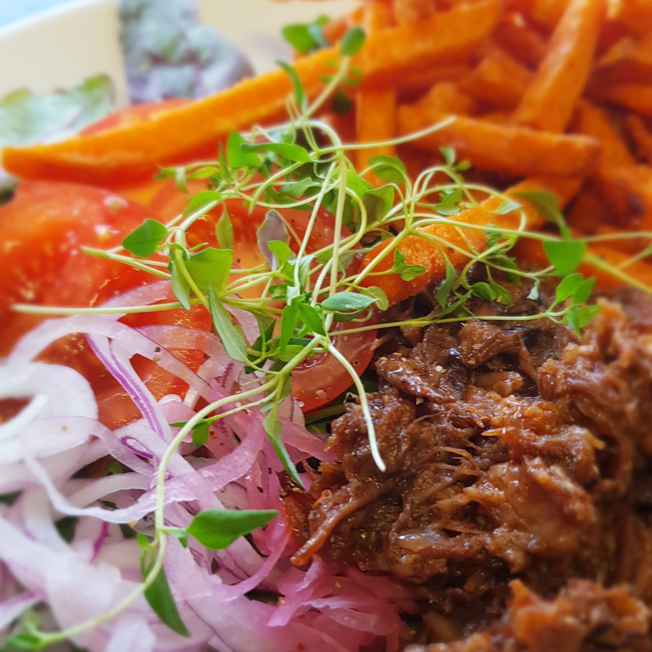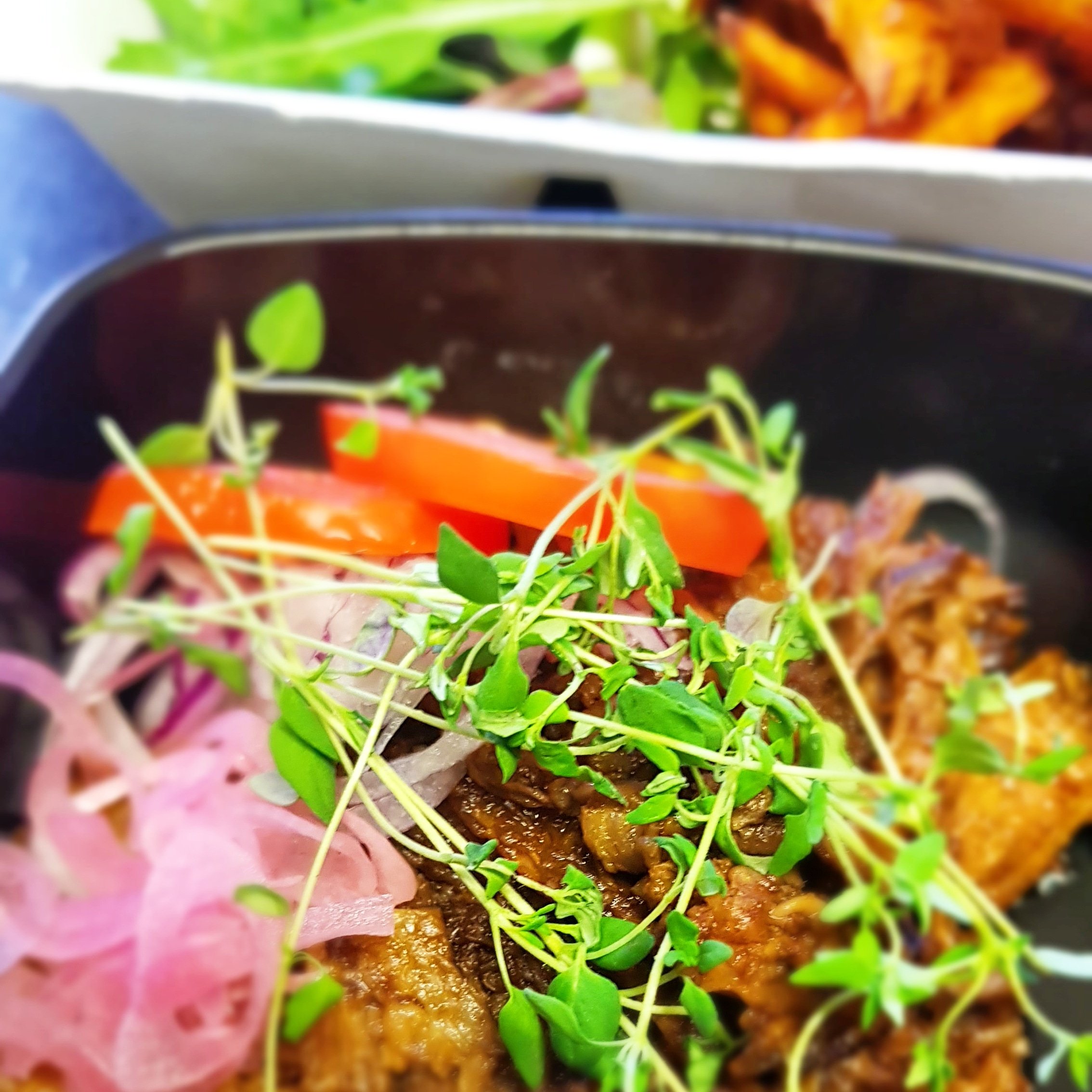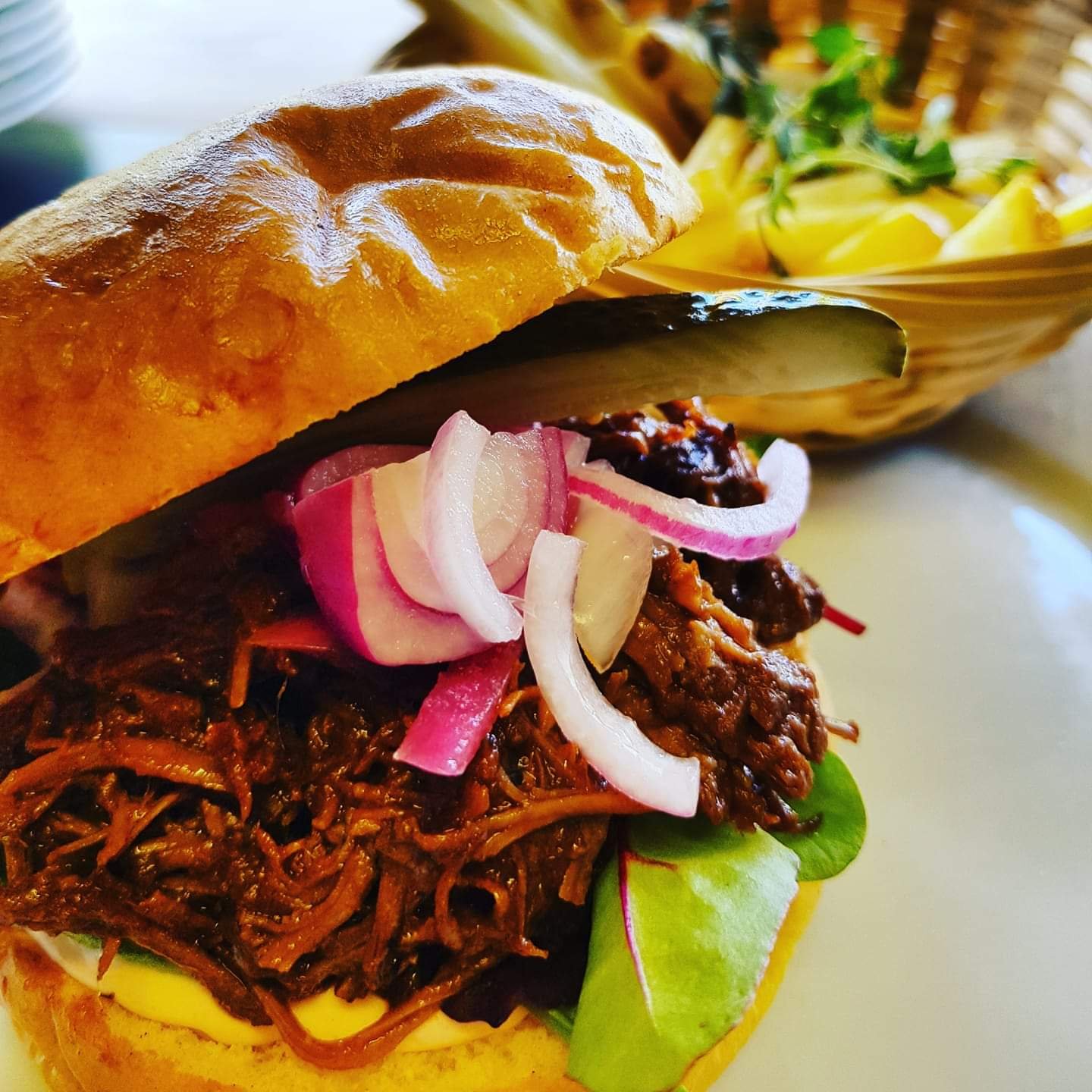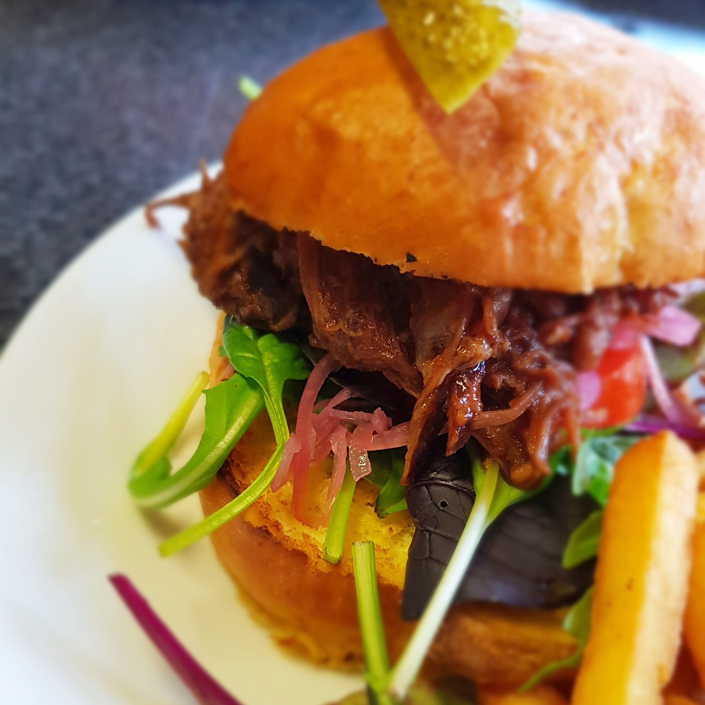 I morse var det bara till att kliva upp 08.00 för att ställa in Pulled Pork som hade fått gotta till sig under natten. Den blev så skrytsamt perfekt och oerhört gott. Detta serverades idag med inlagd rödlök, tomat och blandsallad med vitlöksdressing och countryfries. Jag serverade också med chevreost, sallad och sötpommes vilket var oerhört populärt. Det är så himla glädjande i mathjärtat när gäster köper hem det en har dinerat under kvällen.