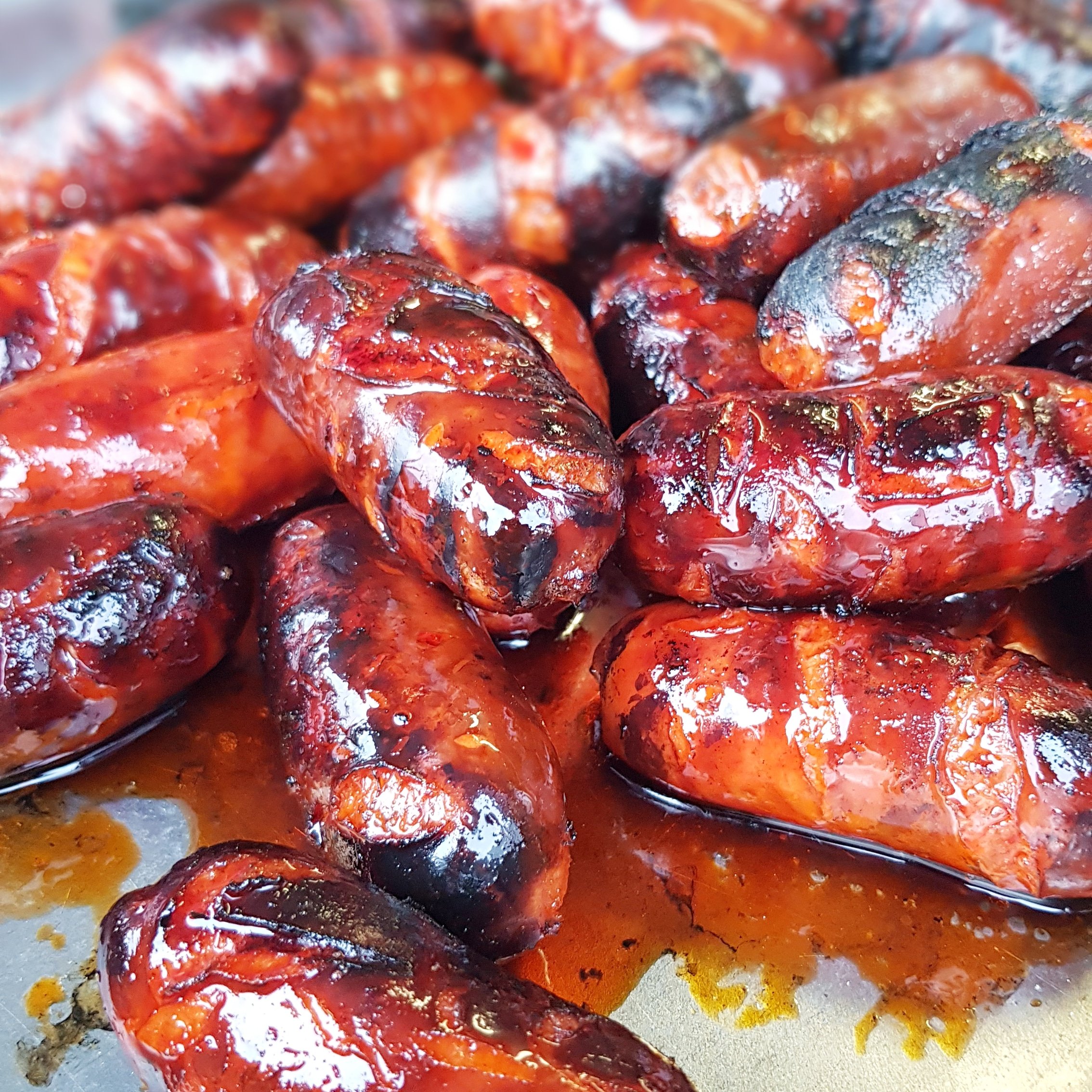 Korvar, biff, marinerade kycklingspett, baby back ribs och veganspett är lite av vad som serveras.