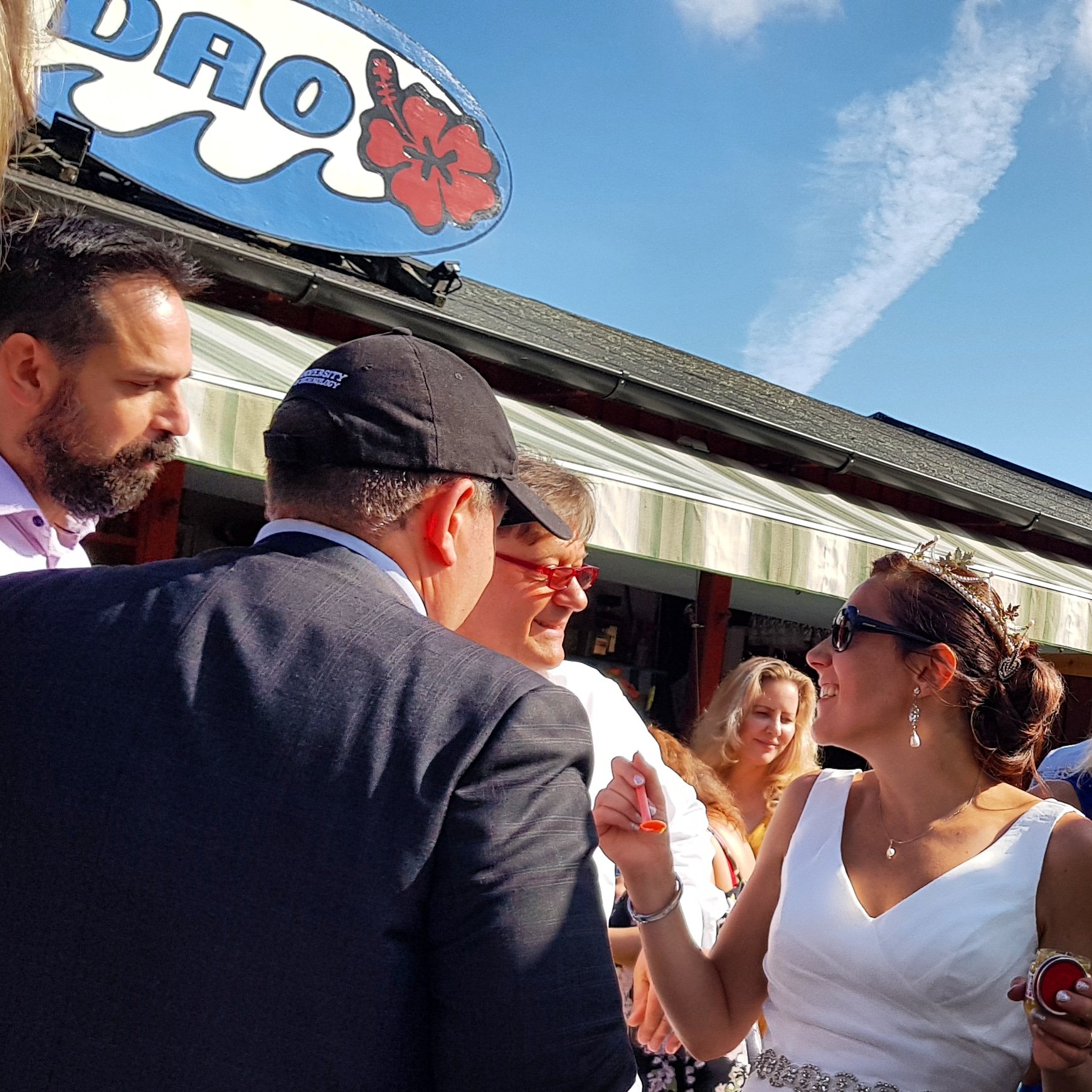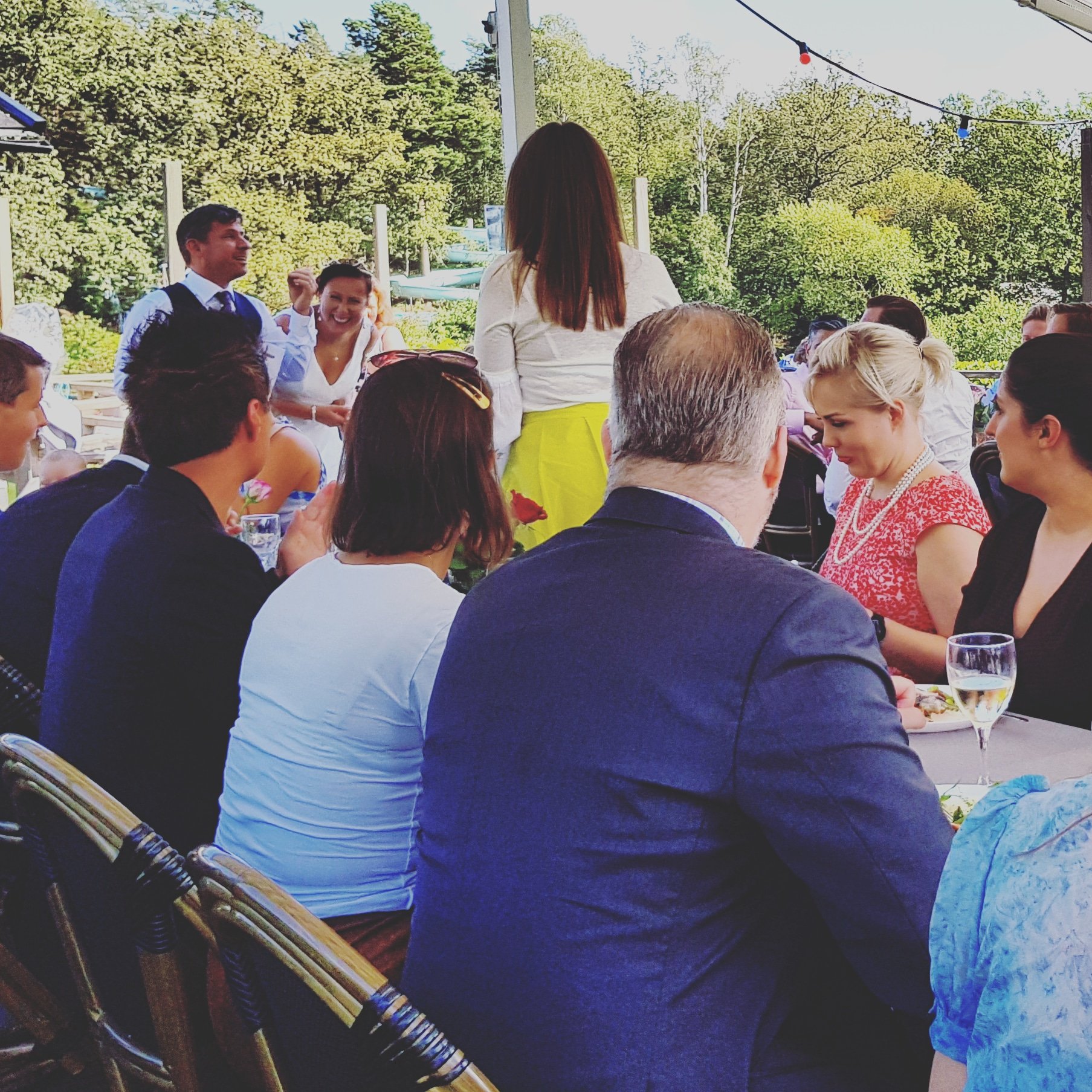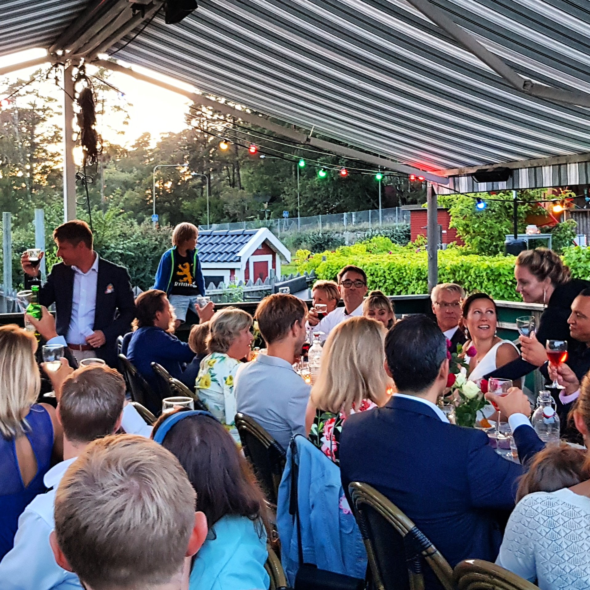 När brudgummen skulle hälsa alla välkommen så nämnde hon även att personalen har blivit goda vänner så vi kunde bli behandlad som en i familjen. Vanligtvis brukar en heta hallå. Undra hur många som har en hallå arbetandes på sin krog?
