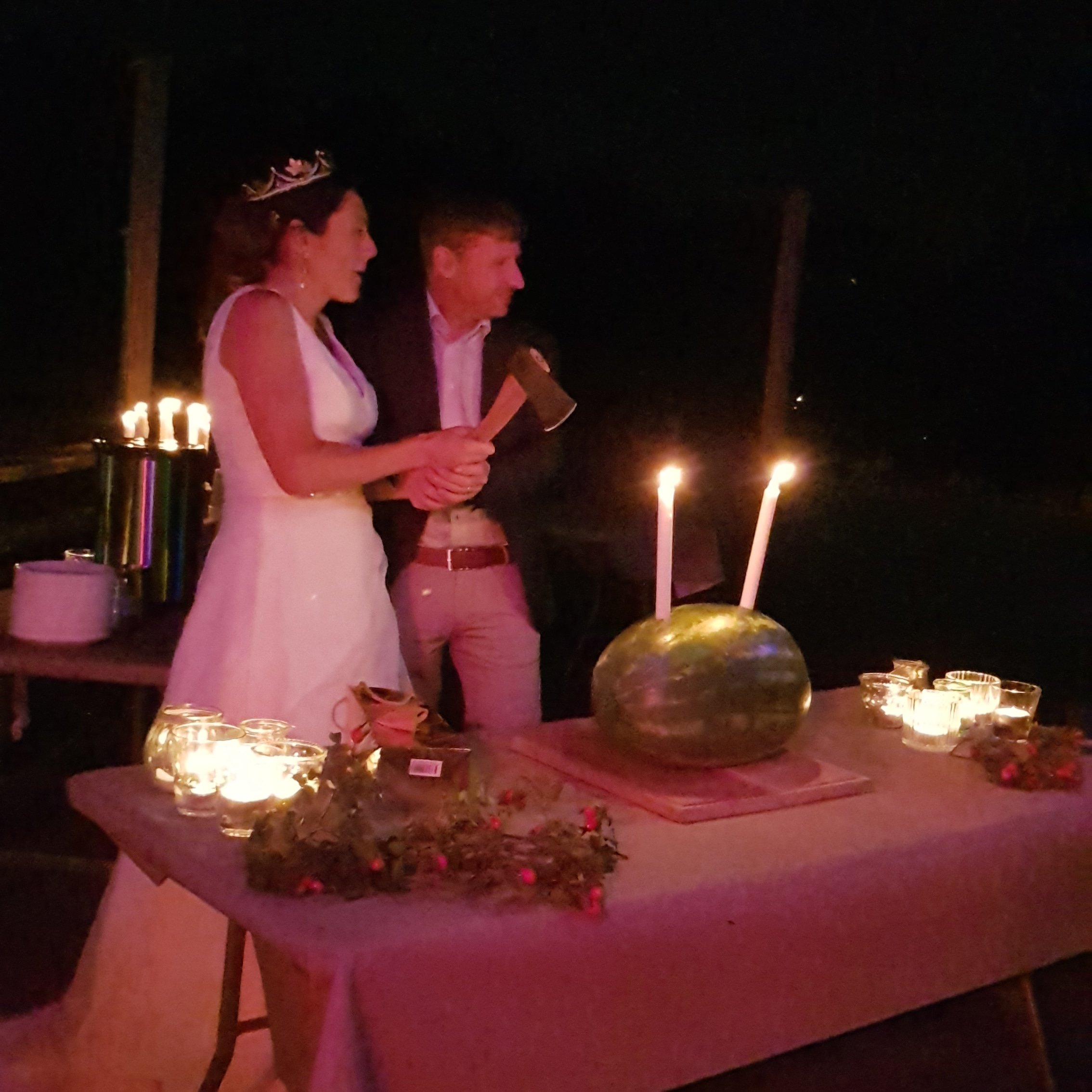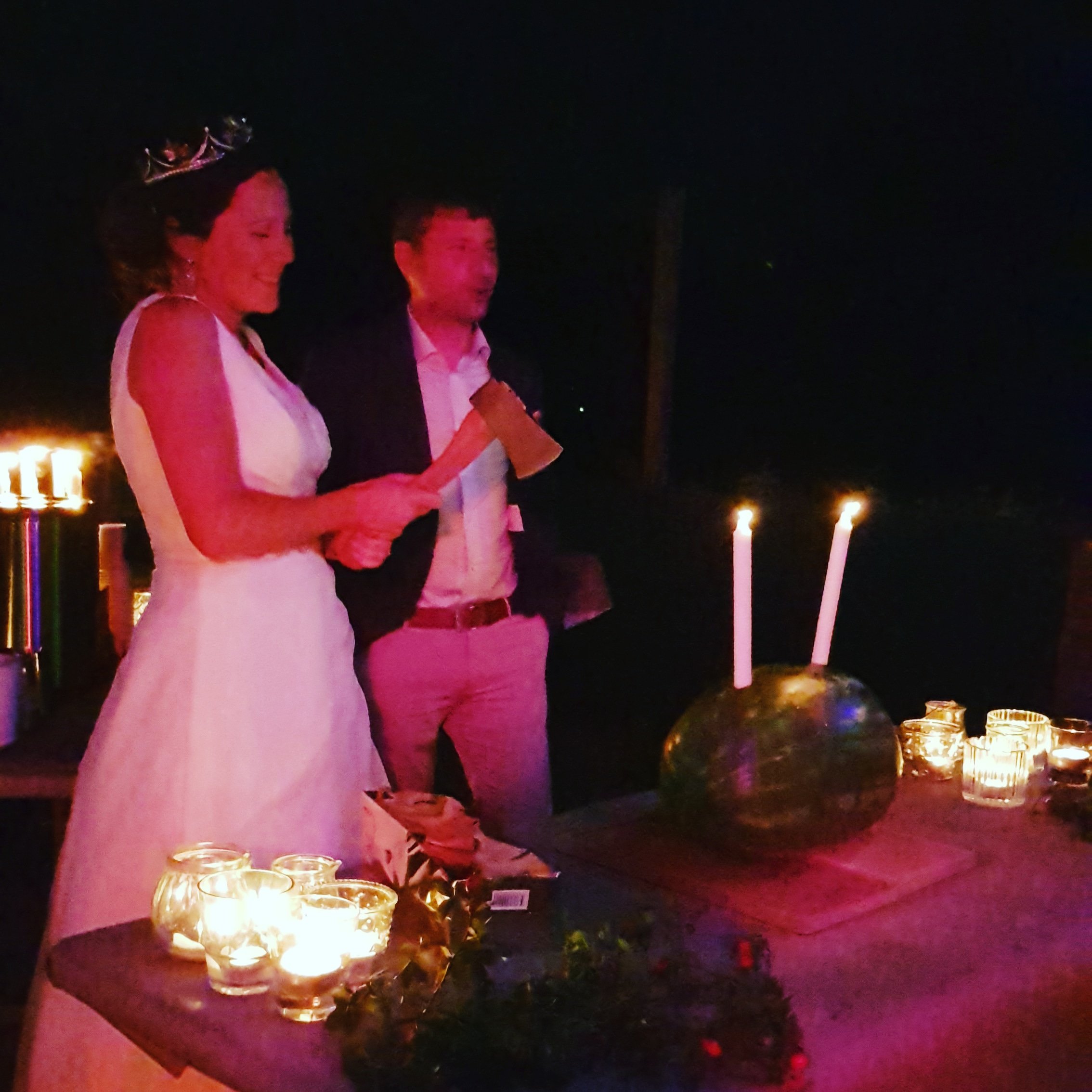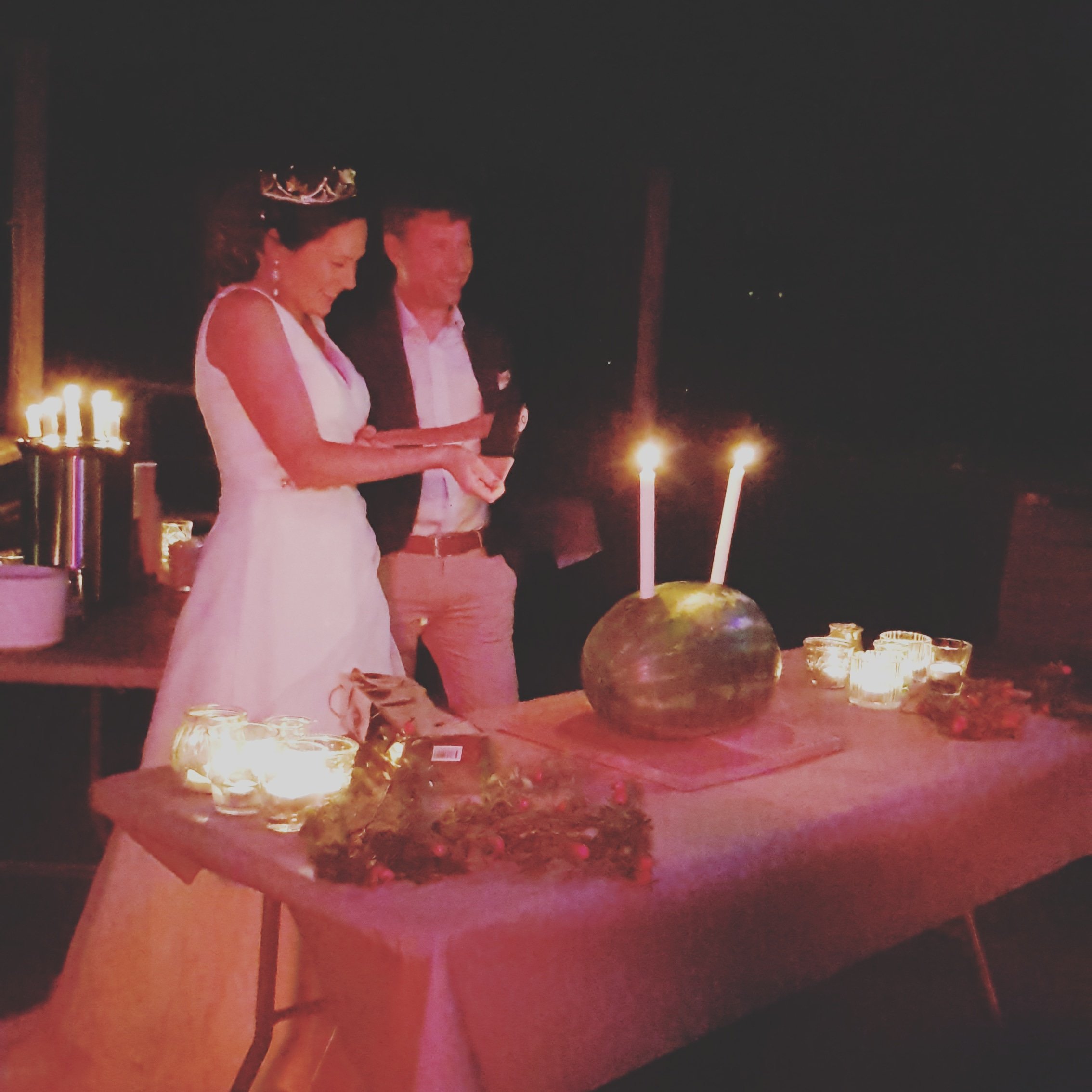 Vem har sagt att ett bröllop behöver en traditionell bröllopstårta? Hur häftigt som helst. Dessutom sprang det ut en tomte mitt i allt. Den som trodde hen såg något i syne såg nog rätt. Eller var det bubblet?