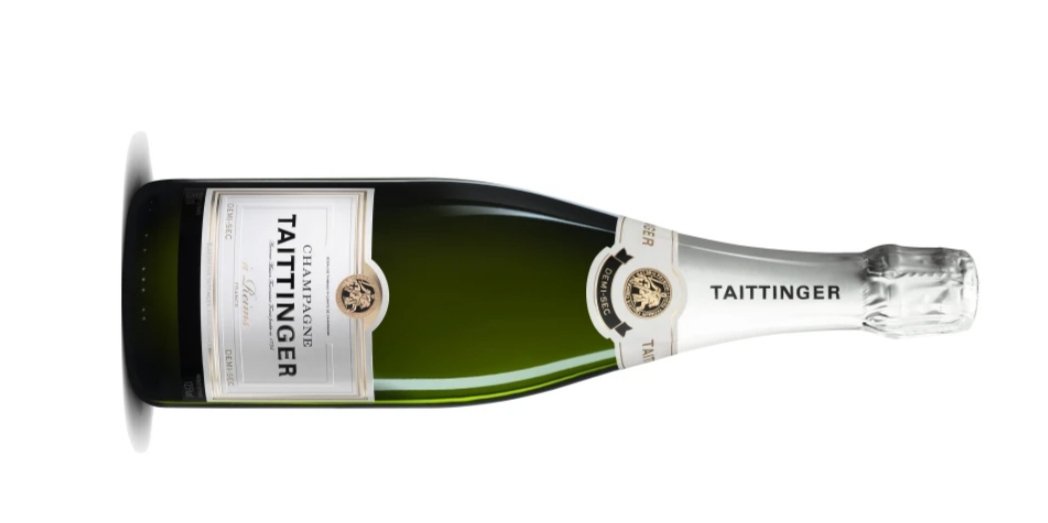 Taittinger Demi-Sec är baserad på 40 % chardonnay samt 60% pinot noir och pinot meunier, från mer än 40 olika byar i Champagne. Vinet har vilat på jästfällningen i fyra år och tillförts 35 gram socker för att bli Demi-Sec, dvs halvtorr i stilen. Sötman bidrar till en sammetslen och mjuk smak med karaktär av mogen gul frukt såsom mango, fikon och gula plommon, vilket balanseras av toner av rostat bröd samt en härlig citrussyra med inslag av mandarin. Lång eftersmak med inslag av nötighet och en fin mineralton.
