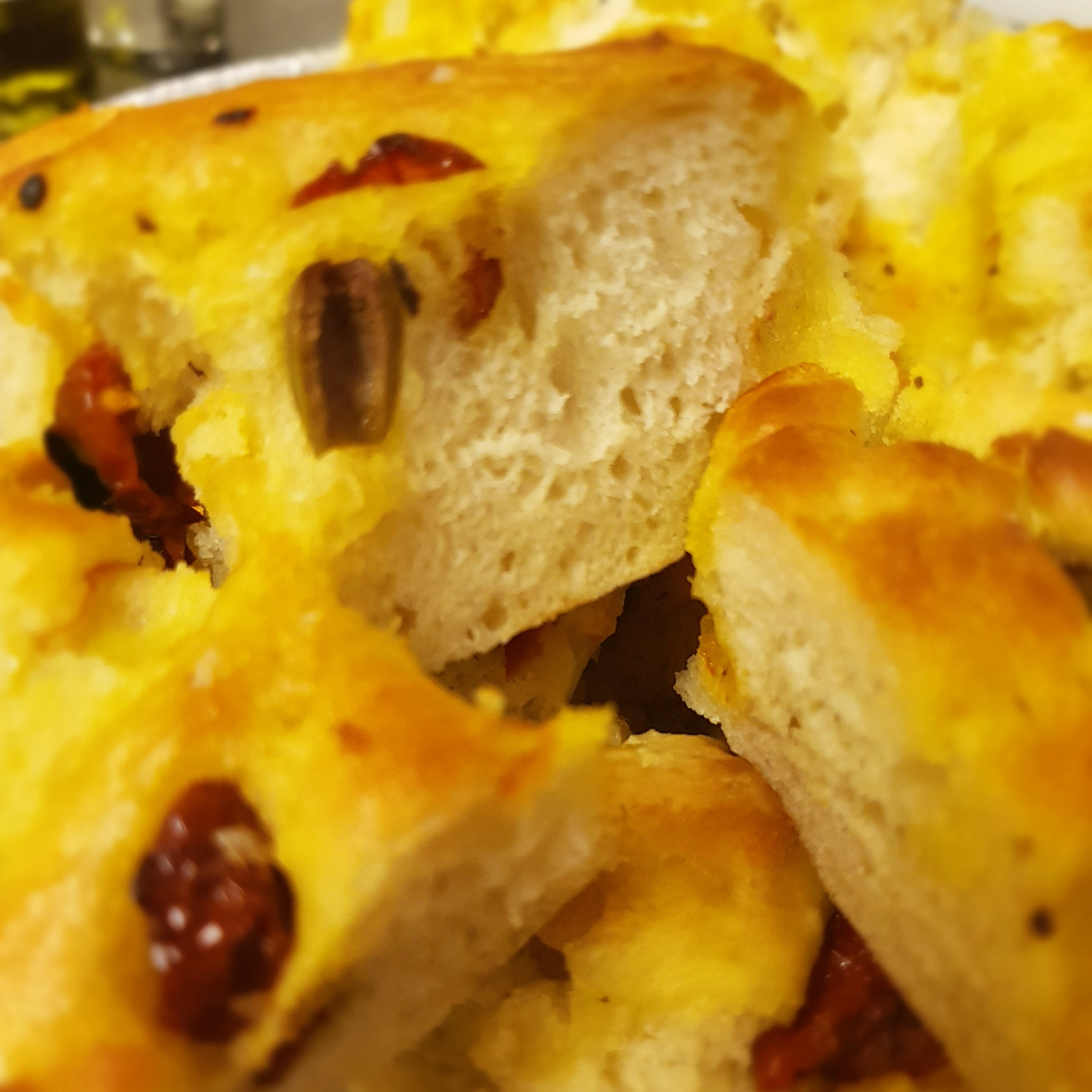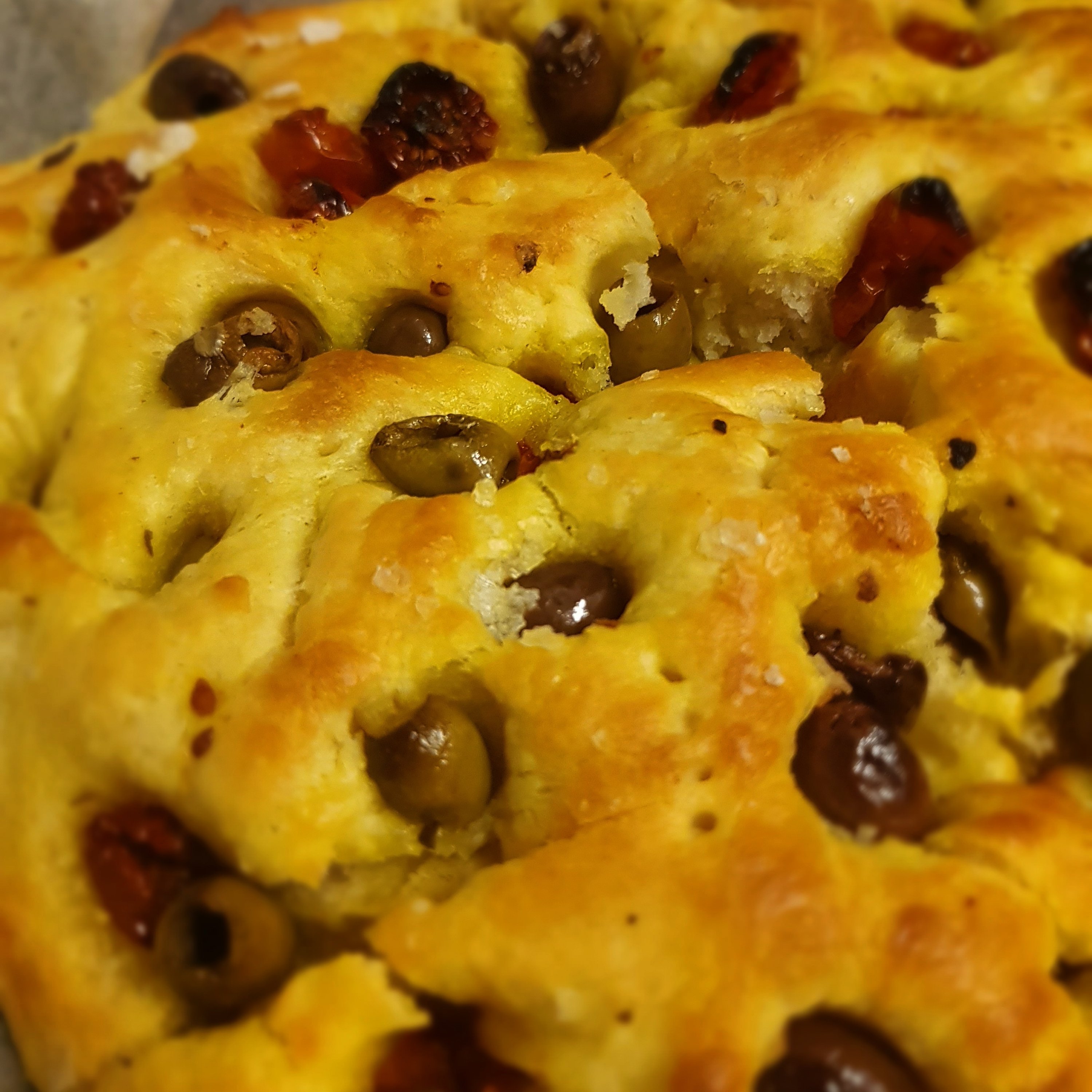Idag har det bakats Foccacia med en massa oliver och soltorkade tomater med ringlande olivolja. Det frasiga täcket med det mjuka och fluffiga blev väldigt bra.