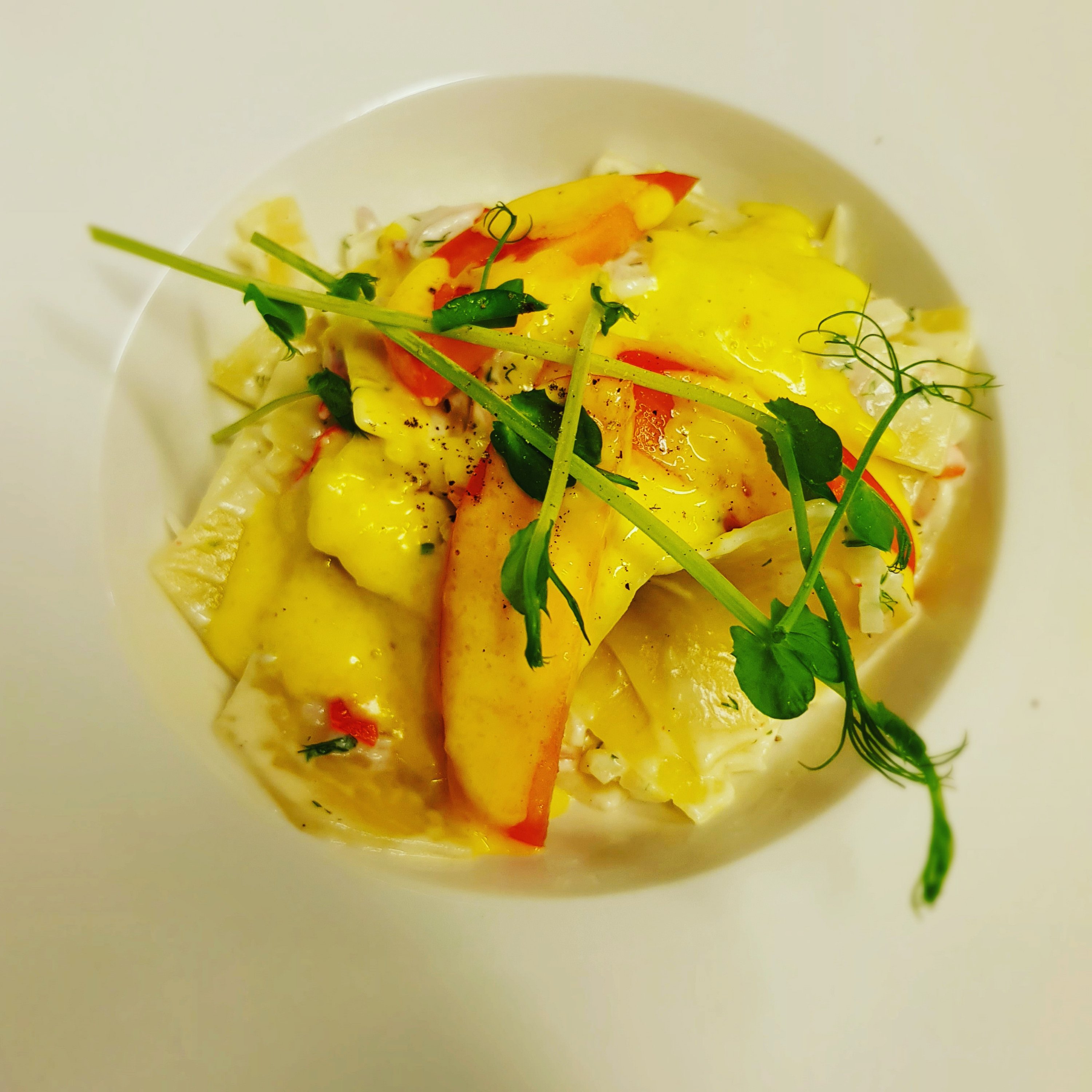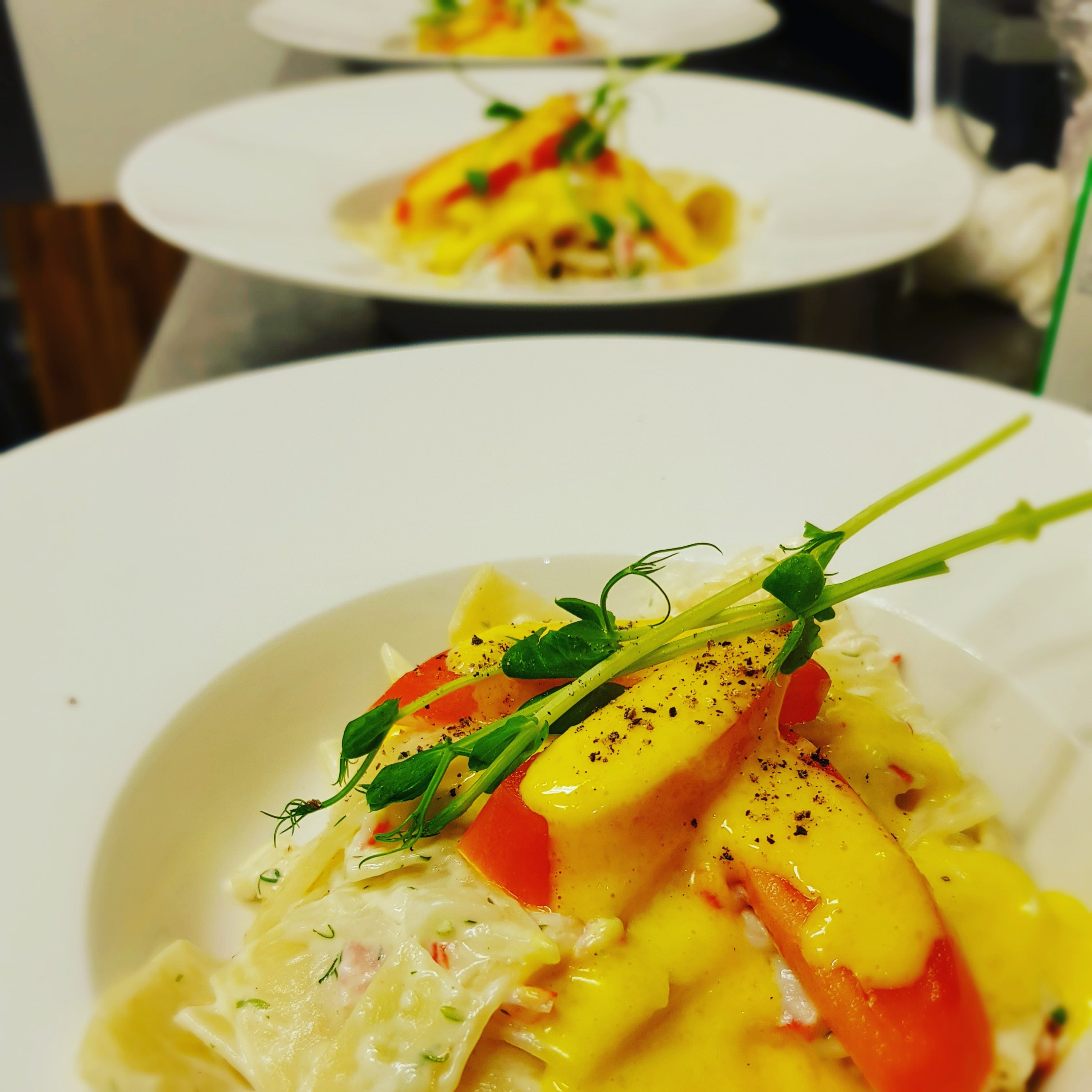 Det fick bli skaldjurspasta som personalmat i veckan. Under måndag, tisdag och onsdagar blir det ofta vegetariskt trots att det är fiftyfifty bland personalen. En härlig och krämig skaldjurspasta funkar oftats. Det bästa hade varit om en avnjöt detta till bords med citronvatten en fräsch sallad och lite bröd i goda vänners lag men nu njöt kollegorna och det är inte fy skam på torra land.