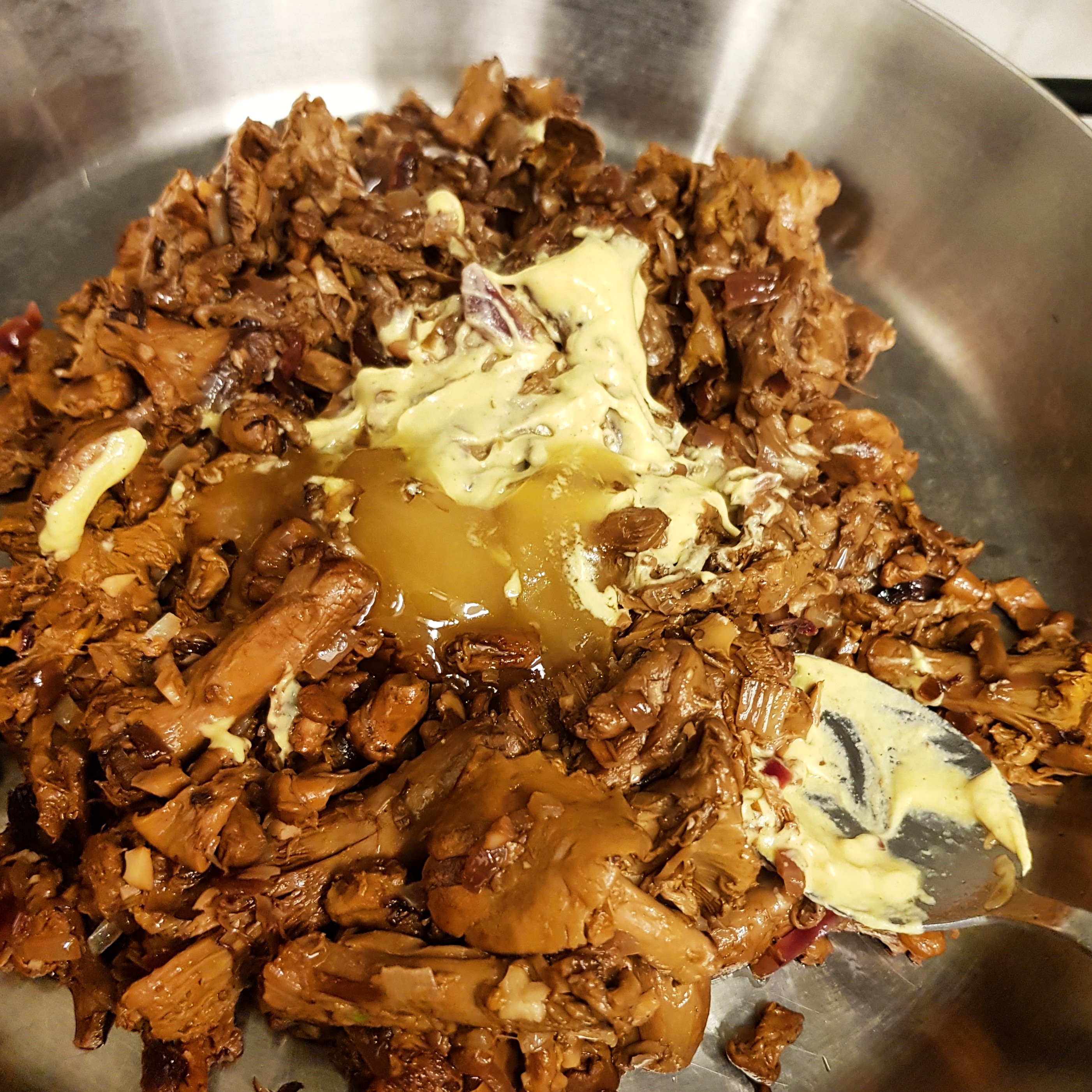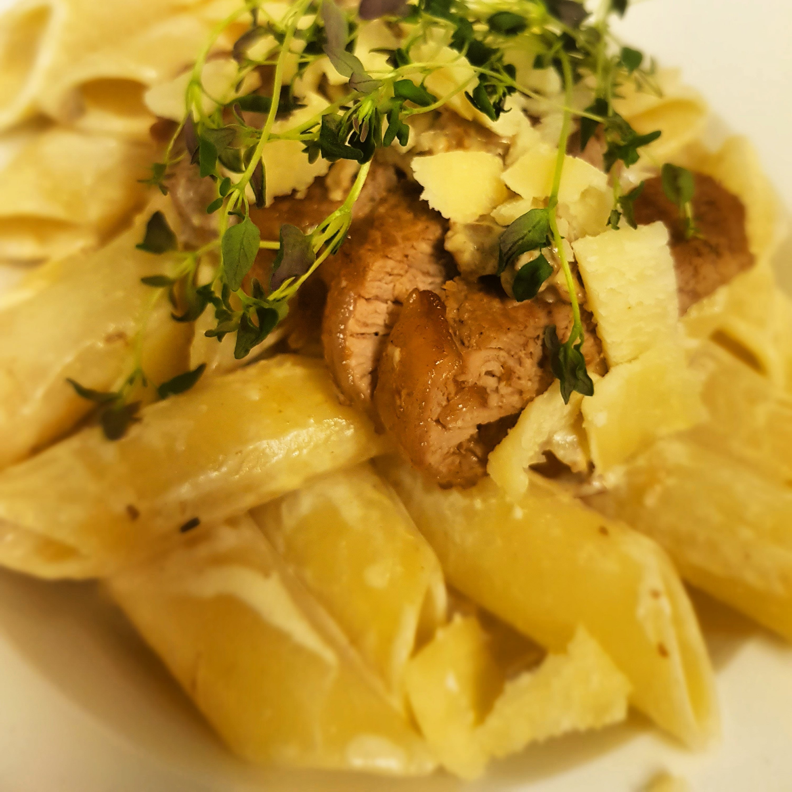 Här ser ni en härlig grund till en cremé som gottar runt med dijon, Marques honung, vittvin, lök, vitlök, salt och peppar. Låt köttet stekas i 30 min och vänd med smör, olja, salt och peppar. Servera med pasta och parmesanflakes.