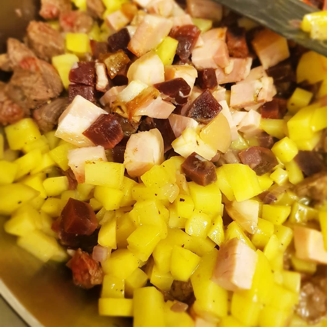 Idag gjorde jag pyttipanna på bresola, proscuttio, högrev, potatis och lök som fick blandas med den mest välanvända kryddan salt, svart och vitpeppar till mina kollegor.