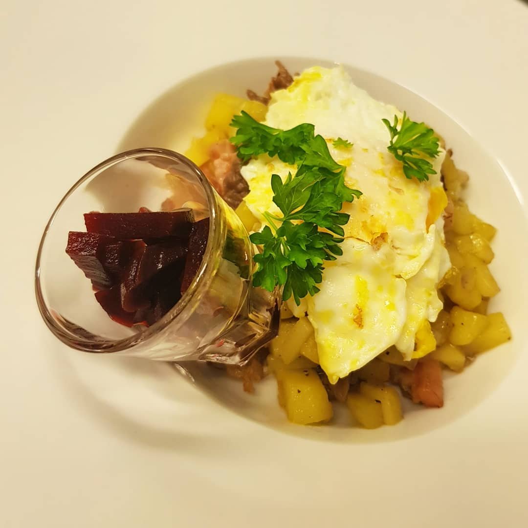 Till detta blev det inlagda rödbetor som har fått gotta till sig under natten samt stekt ägg med persilja.