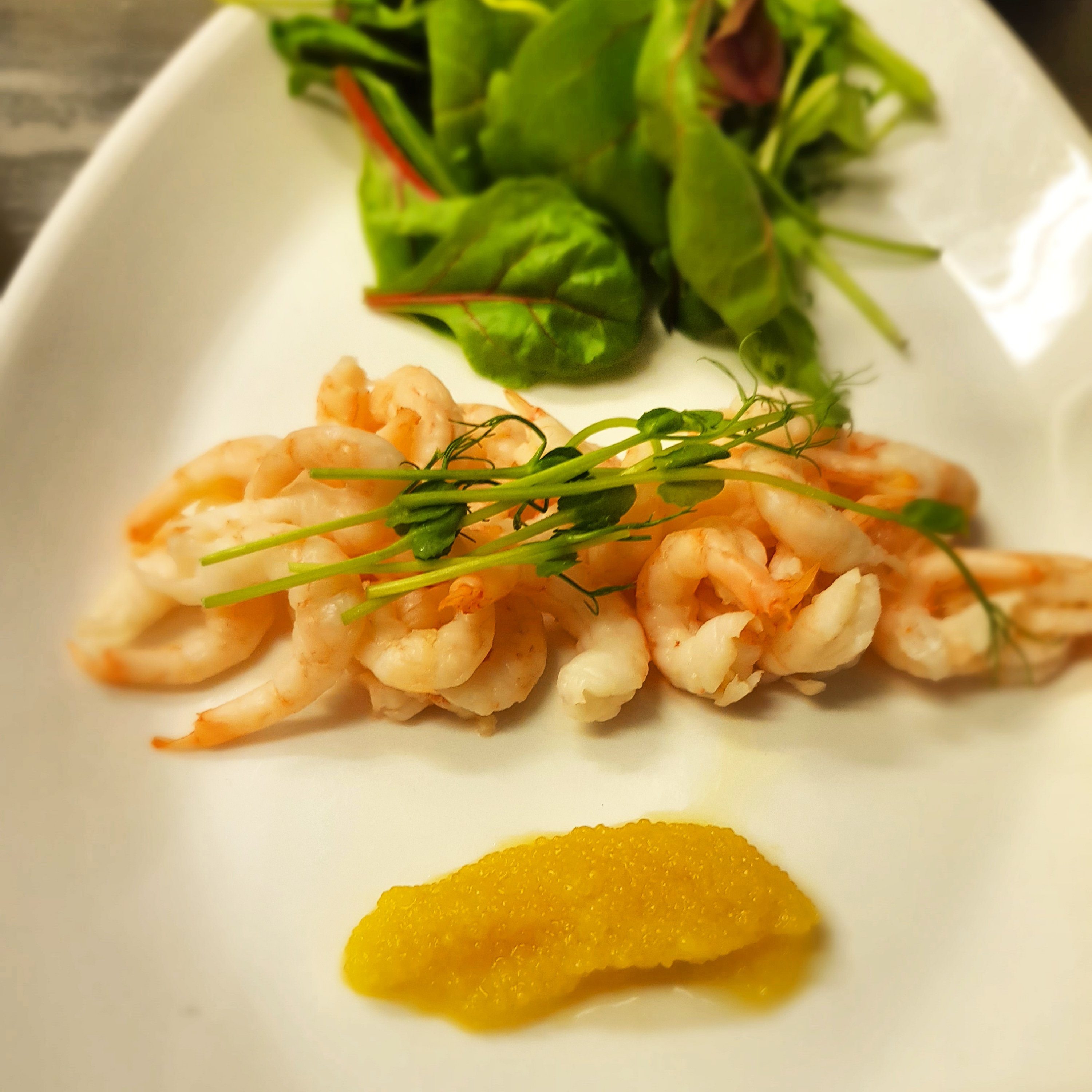 Gästen önskade bara sallad, räkor och löjrom samt lite rödlök. Efter lite argumentation med servitrisen så gick jag med på upplägget. Allt för gästen? 10 sekunder efter servering så ber hon personalen efter ett bröd, grillat.