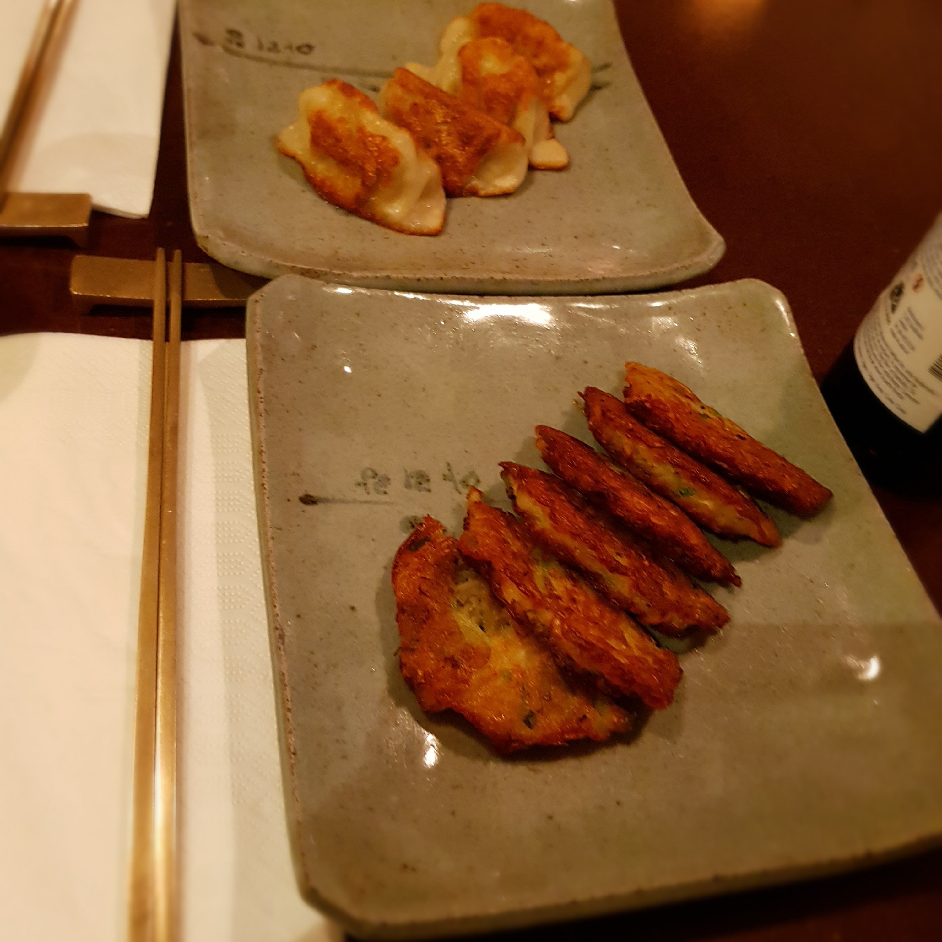 Jag skulle bara kunna sitta och äta mungbönsplättar och doppa i en god halvstark soyasås. Det är också så himmelskt gott när knytena är fried. Förrätterna skulle kunna beställas in om och om igen.