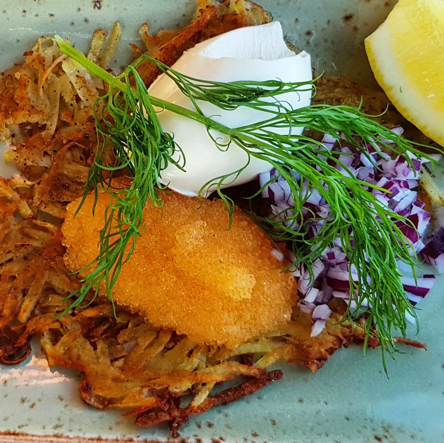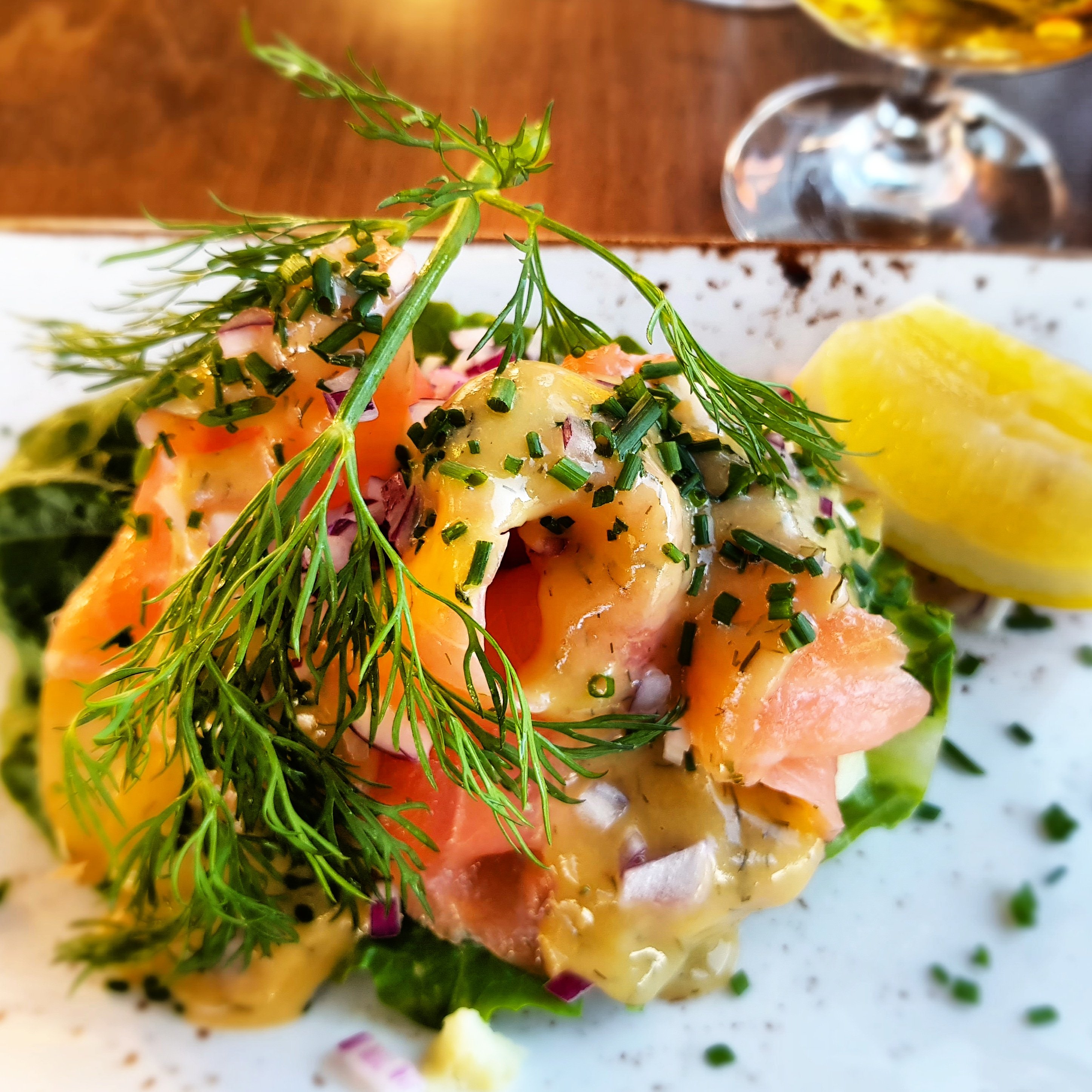 Råraka med kalixlöjrom, smetana och finhackad rödlök tillsammans med ett glas cava såhär en enkel söndag.