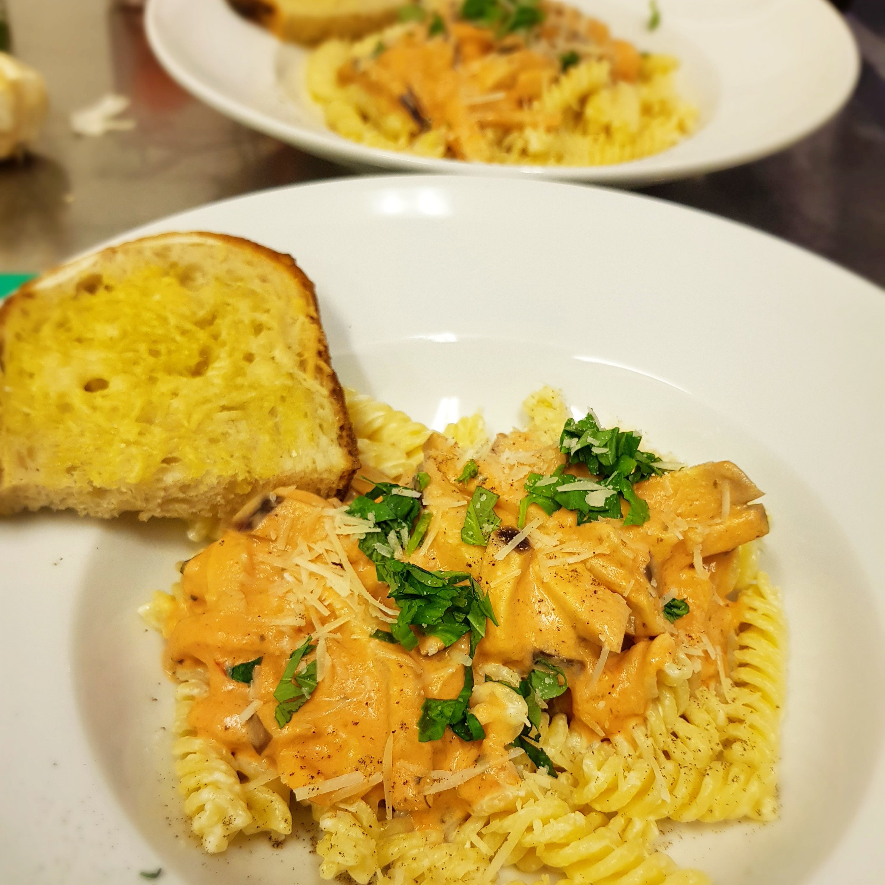 Toppa med parmesan och färsk basilika.