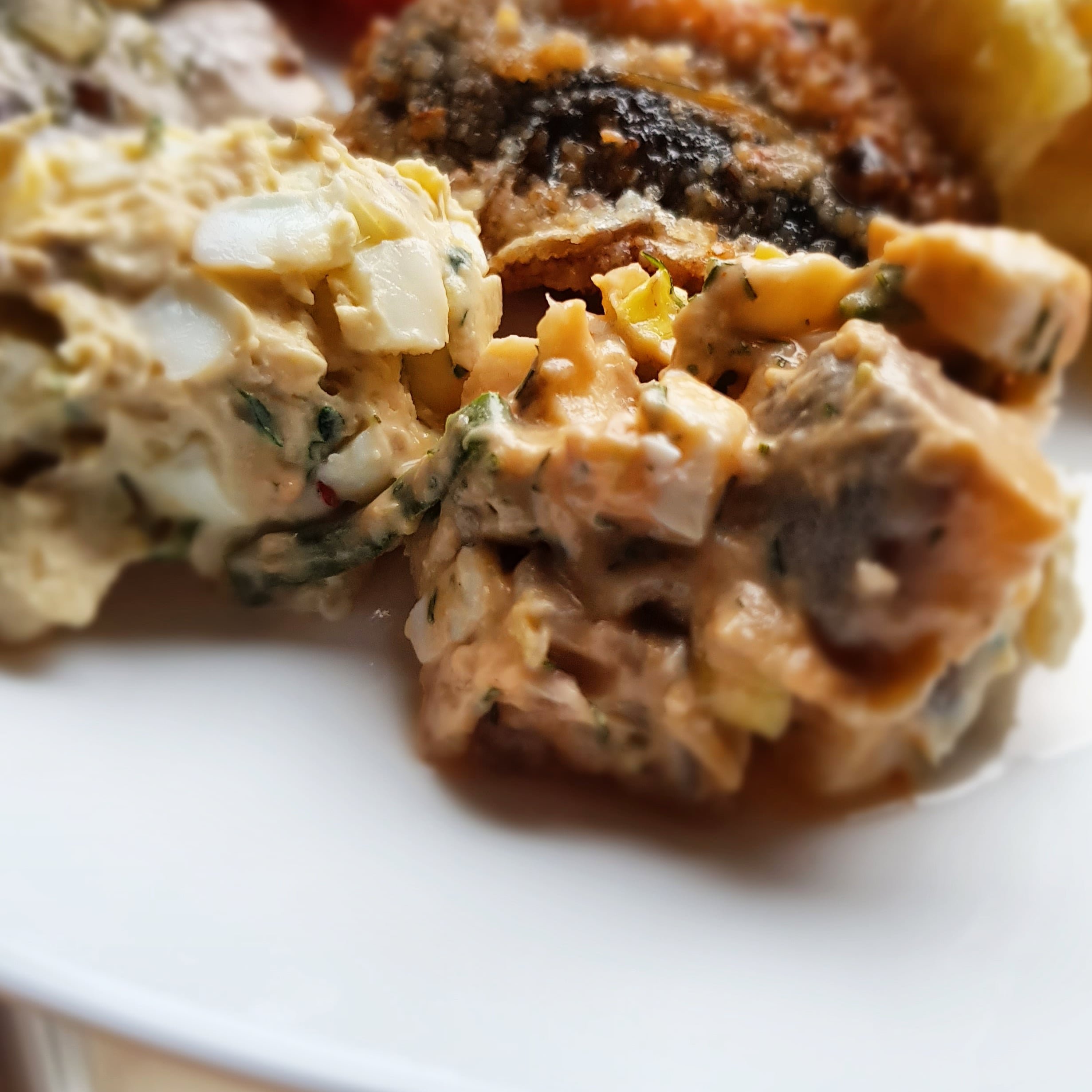 En helt vanlig gubbröra och en med lite tomatpuré och chili. Helt okej och passande på smörgås. Vem kan klara sig utan stekt inlagdströmming? Det är så gott.