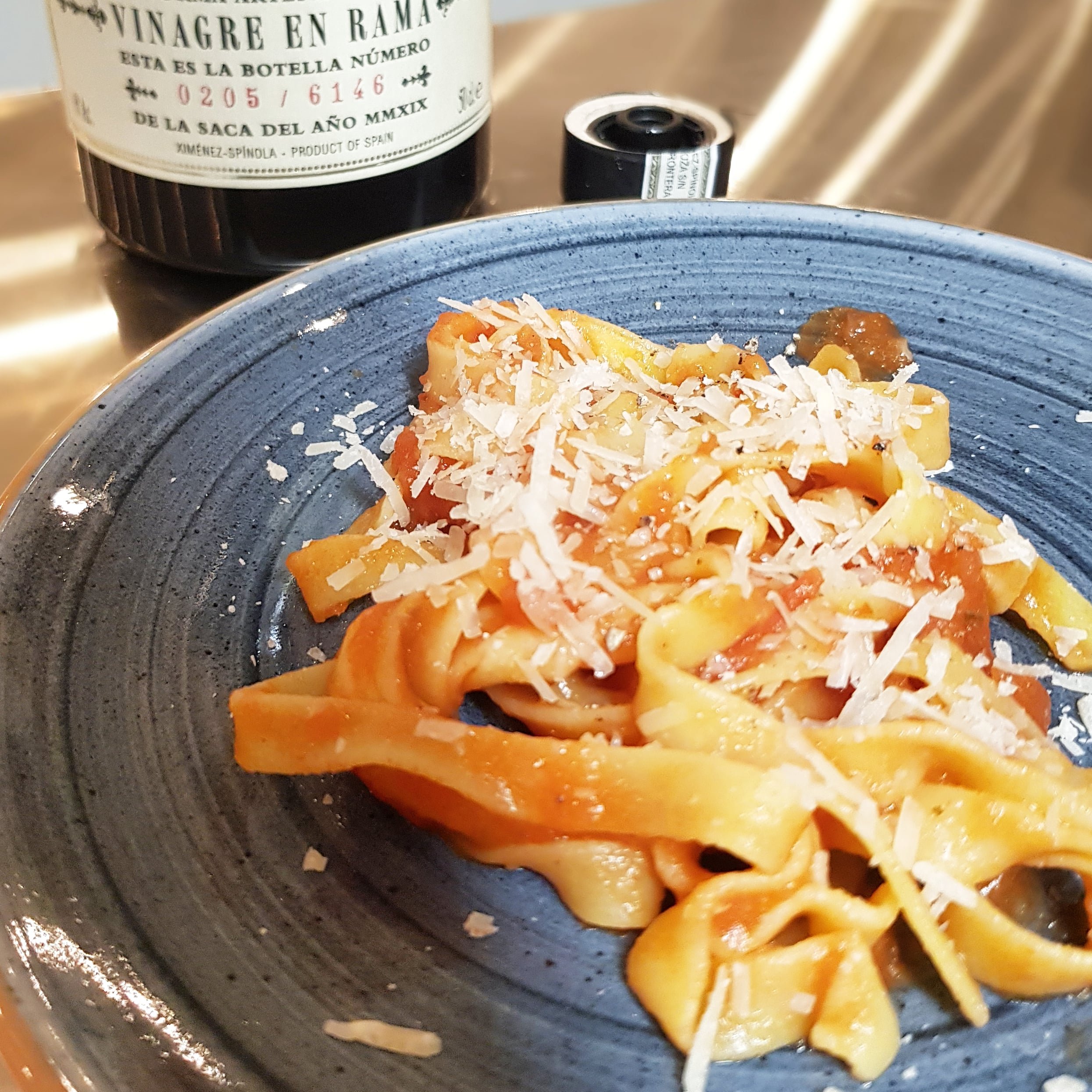Idag reducerade jag ner och upp lite Ximénez-Spinola i min tomatsås som fick slungas runt med en färskpasta vi håller på att smaka av.