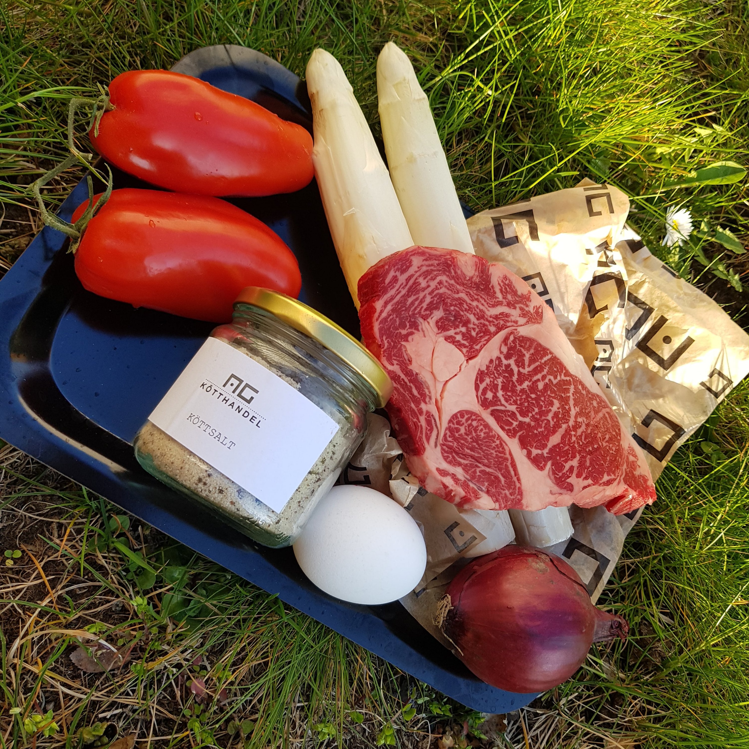 Idag köpte jag hem en härlig bit entrécote från Småland på AGs kötthandel på NK saluhall. Hetta upp pannan, släng ner lite smör och olja samt på med köttet. Låt det steka 30-40 sekunder och vänd. Rekommenderar starkt att krydda på med AGs egna köttsalt. Det är himmelskt. Det kommer att passa perfekt på köttet på grillen i sommar. (Det där med tiden är en smaksak eftertycke och smak samt storlek på kött)
