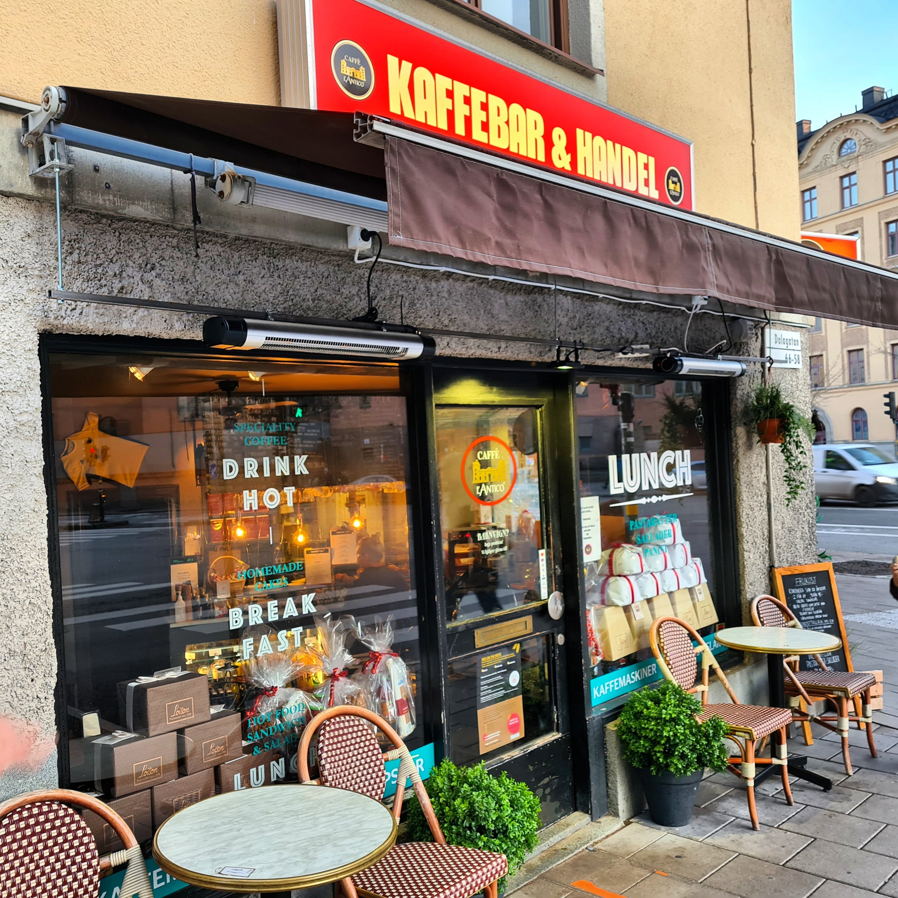 Om ni har vägarna förbi Odenplan och Dalagatan 58 så kika in på den lilla mysiga kaffebaren Caffe L’Antico med tillhörande butik. Här erbjuds äkta italienskt kaffe, croissanter, sallader, grillsmörgås och italienska godbitar.