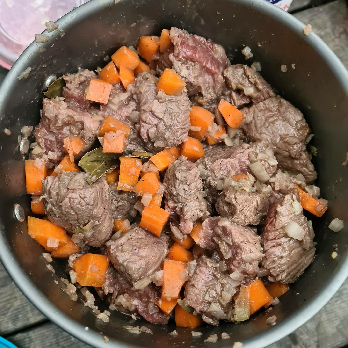 Jag hade lovat att fixa kött så det blev rätt. Jag fann ett stycke ekologiskt och svenska högrevsbitar från den Småländskaskogen som passade bra när det blev fastfoodcooking på ca 10-15 minuter. Hur ofta gör man en gryta på en kvart? Det funkade och det smakade bra.