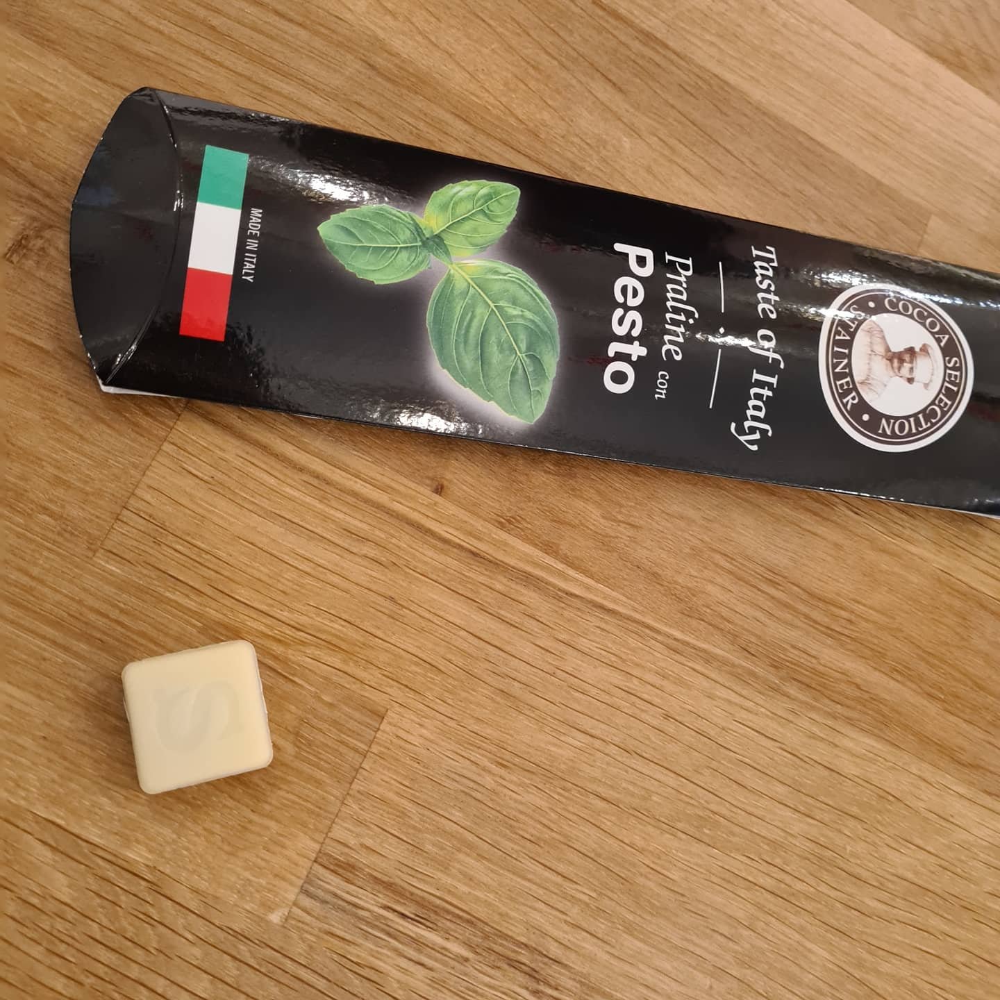 Idag har jag testat en smak av Italien. Vitchoklad med pesto. För den som älskar Vitchoklad är det här supergott. För den som tycker om pesto så är det här också gott. Kombinationen är inte direkt på topp om en inte tycker om vitchoklad. Smaken är som baken, delad. Några älskar detta. Andra tycker det är mindre passande.