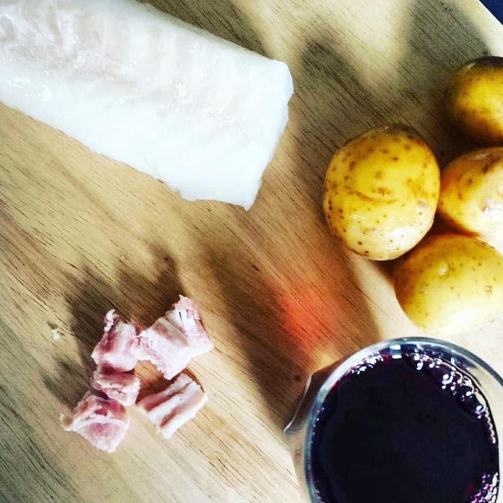 Ett glas Amarone Tommasi, potatisen kokar, torsken är i ugn och såsen vispas runt medans baconet får knaperstekas. Har vi inte en underbar sommarkväll då? Framförallt till matlådan dagen efter.