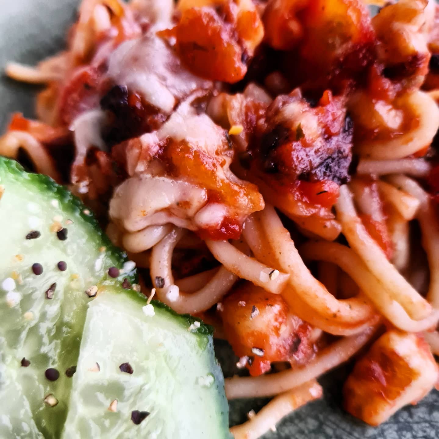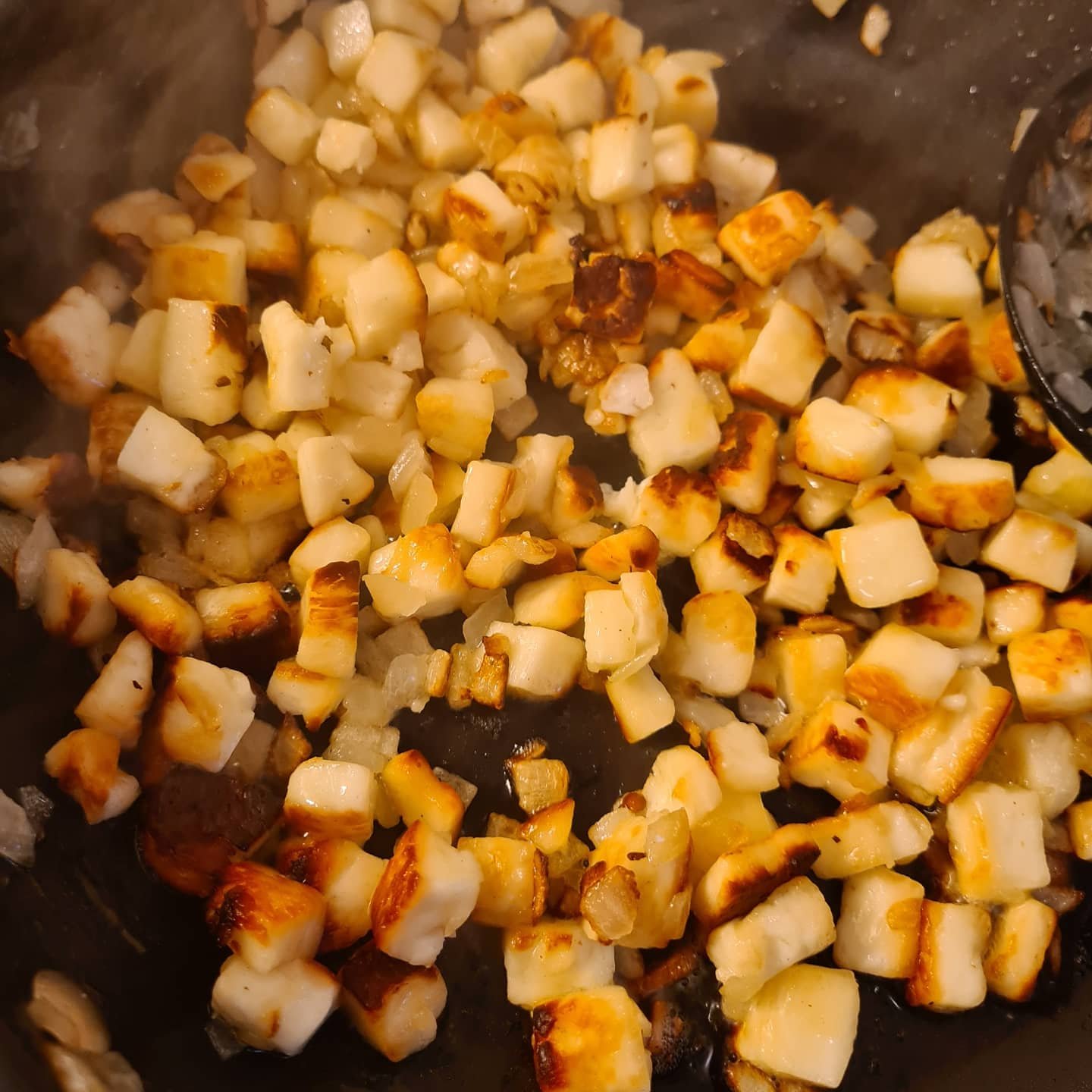 Jag har gjort ett x antal gratänger på halloumi. Idag fräste jag på lök, halloumi och vitlök. Kokade pasta och en färdig tomatsås med extra oregano, timjan, chili, cayennepeppar, lite tomatpuré och grönsaksfond. Allt detta fick puttra innan jag vänder ner såsen i osten. Ta några matskedar från pastavattnet och rör om i tomatsåsen. Vänd ner allt i en gratängform och riv över grandpandano. Ugnen på ca 225 grader i minst 20 minuter samt när ni ser att osten börjar få färg. Servera med en kall laktosfri crème fraîchesås eller en härlig sallad.