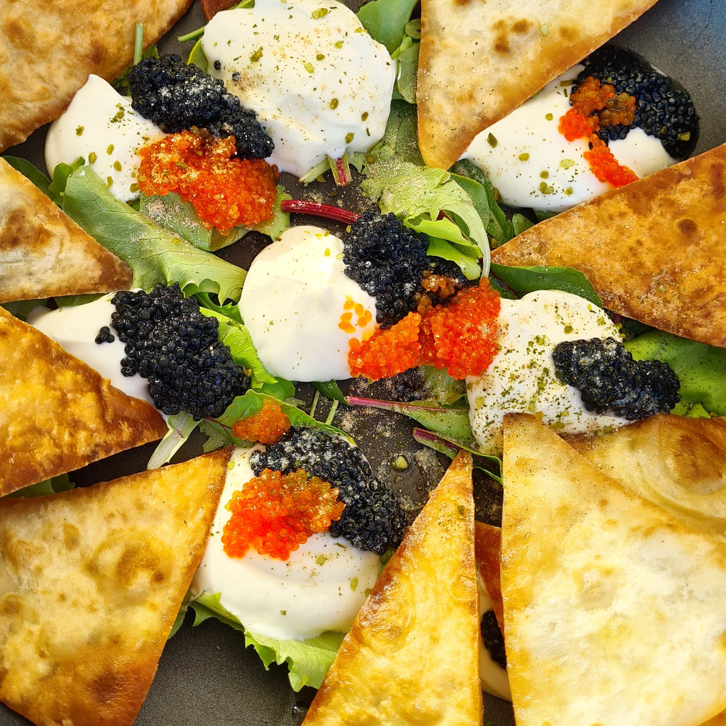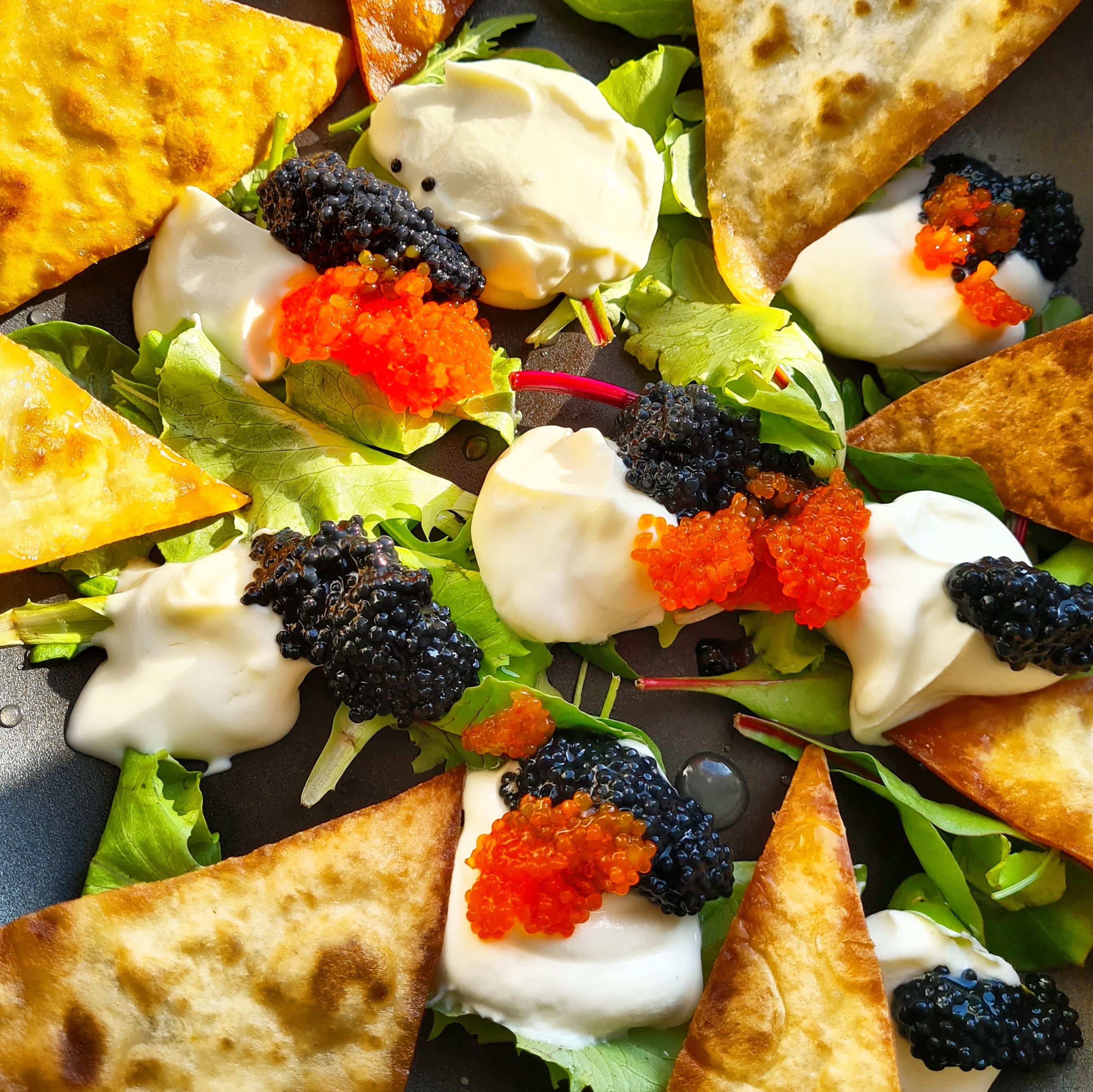 Häromdagen orkade jag inte med att dra ihop en riktig middag så jag svängde ihop friterad libabröd, vispade ihop en laktosfri crème fraîche, klicka på lite tångcaviar och dra över lite citronsaft, vitpeppar och persilja. Jag hade dessvärre ingen färsk dill eller citron så en tager vad som finns.