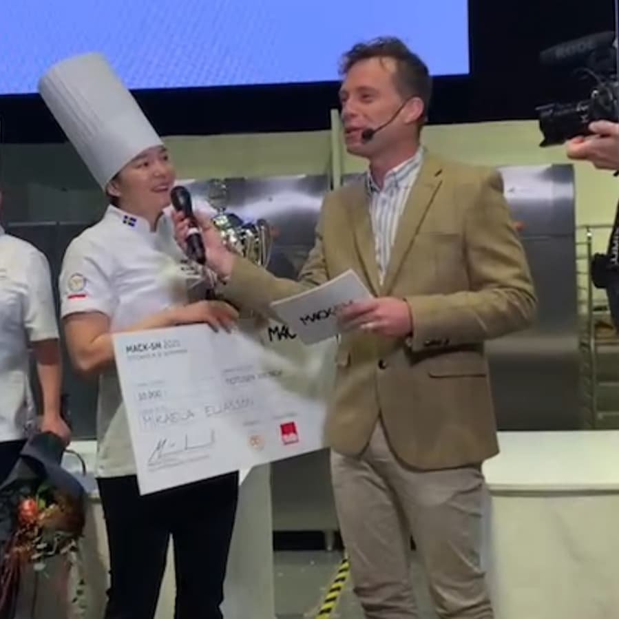 Årets vinnare i Mack-SM 2021. Konferencier och värd Henrik Olsson.