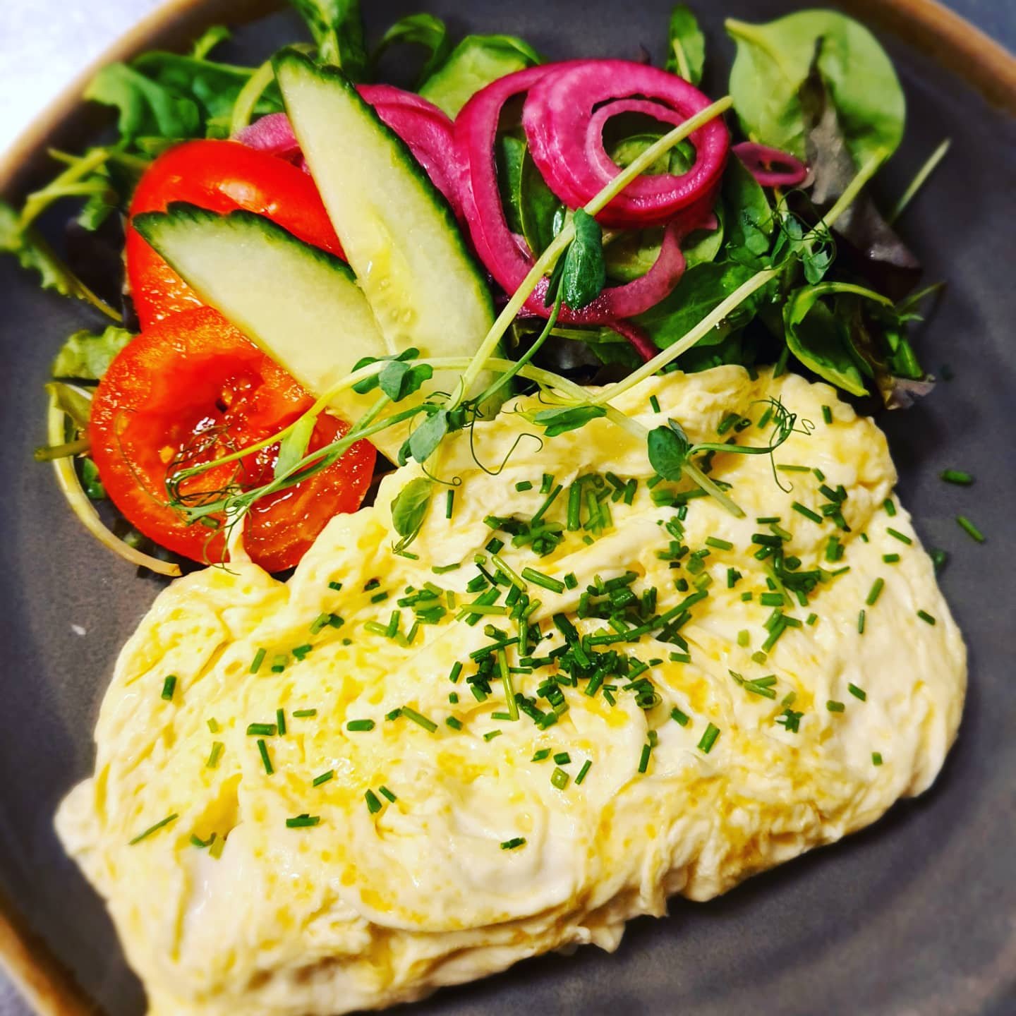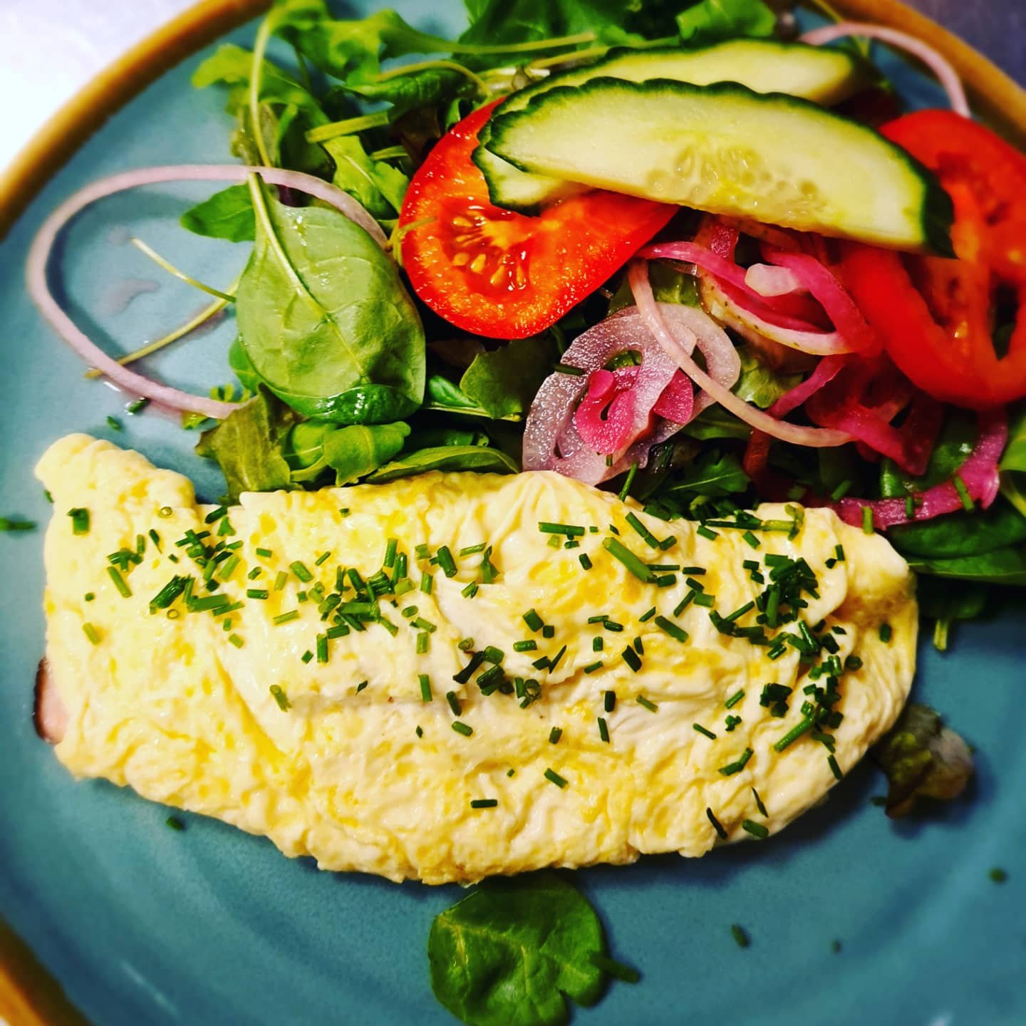 Jag läste på nätet om en någonsin har sett Julia Child göra omelett så förstår ni säkert att det finns lite teknik att öva in men när man väl fått in tekniken är det riktigt enkelt. Det viktigaste är väl åtminstone att ha en bra stekpanna och en rejäl klick med smör?