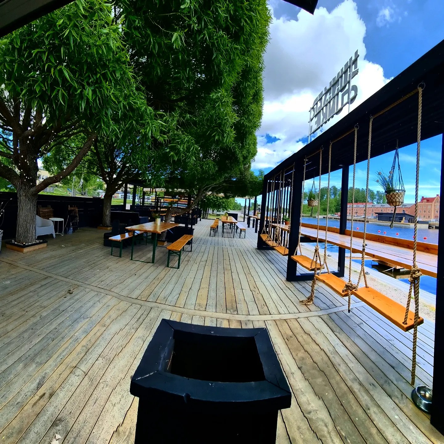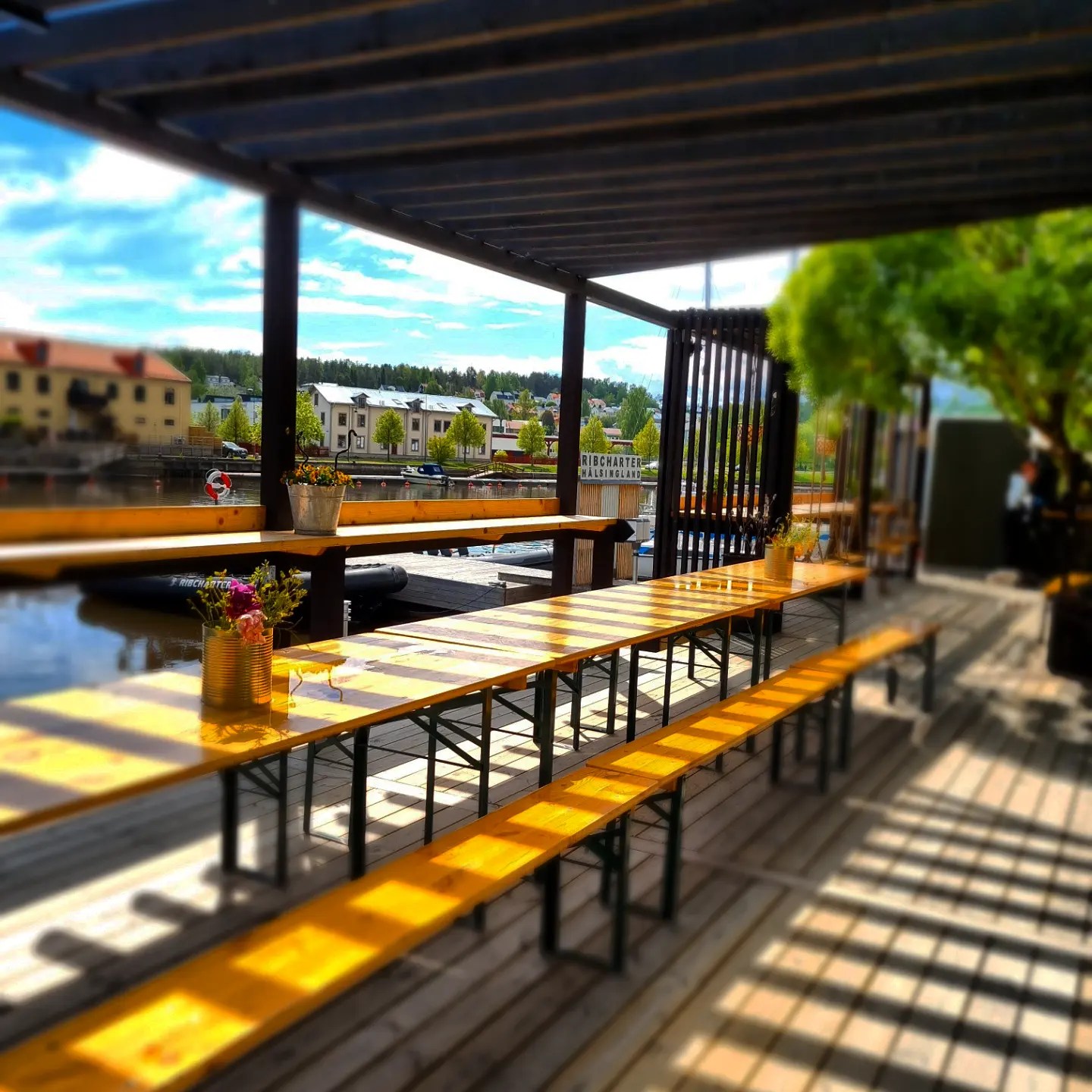 Vill du ta en öl eller bara en enkel drink med is så finns det många bra erbjudande vid gästhamnen men om du vill avnjuta mat och är trött på burgare, pommes och bearnaisesås så rekommenderas Hunker Junker.